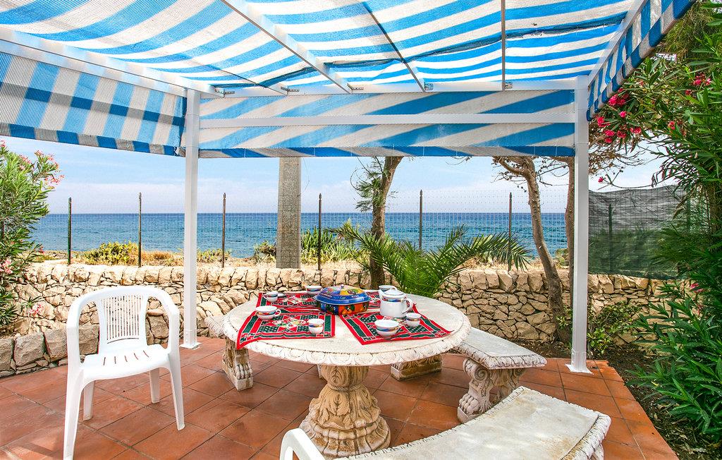 Am privaten Swimmingpool mit Wasserrutsche können Sie viele Stunden in der Sonne und mit Abkühlung im Wasser verbringen. Am Pool gibt es praktischerweise auch eine Dusche und ein Bad. Auf der mit Gartenmöbeln ausgestatteten Terrasse mit Meerblick können Sie den Tag mit einem kühlen Getränk ausklingen lassen und den Grillabend mit der Familie oder Freunden planen. Vom Haus gibt es einen sekundären Ausgang mit direktem Zugang zum Strand.
