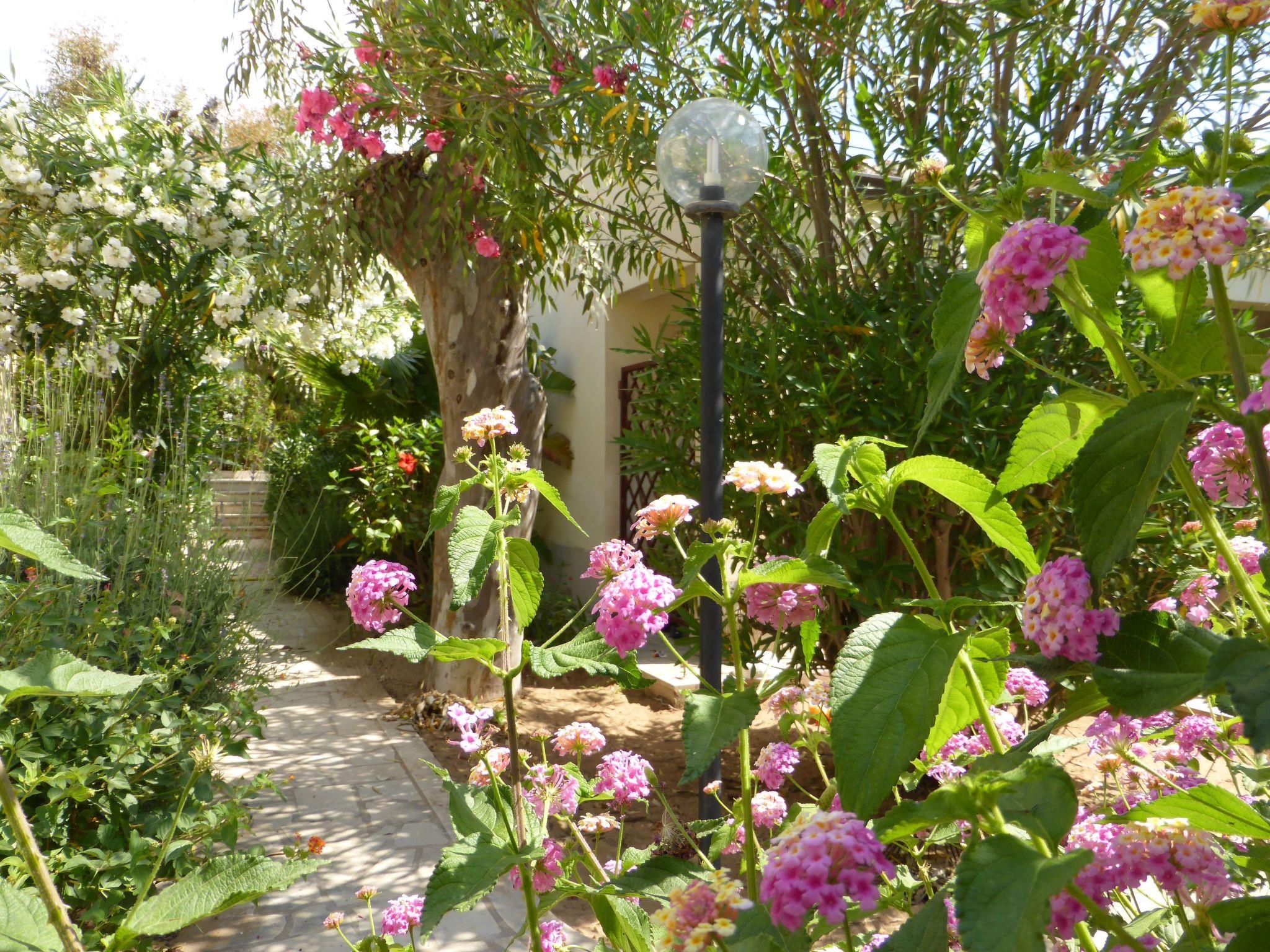 Die freistehenden Bungalows in der Parkanlage sind von blühenden Oleanderbüschen, Zitronen-, Orangen- und Feigenbäumen sowie von wunderschönen großen und kleinen Palmen umgeben.