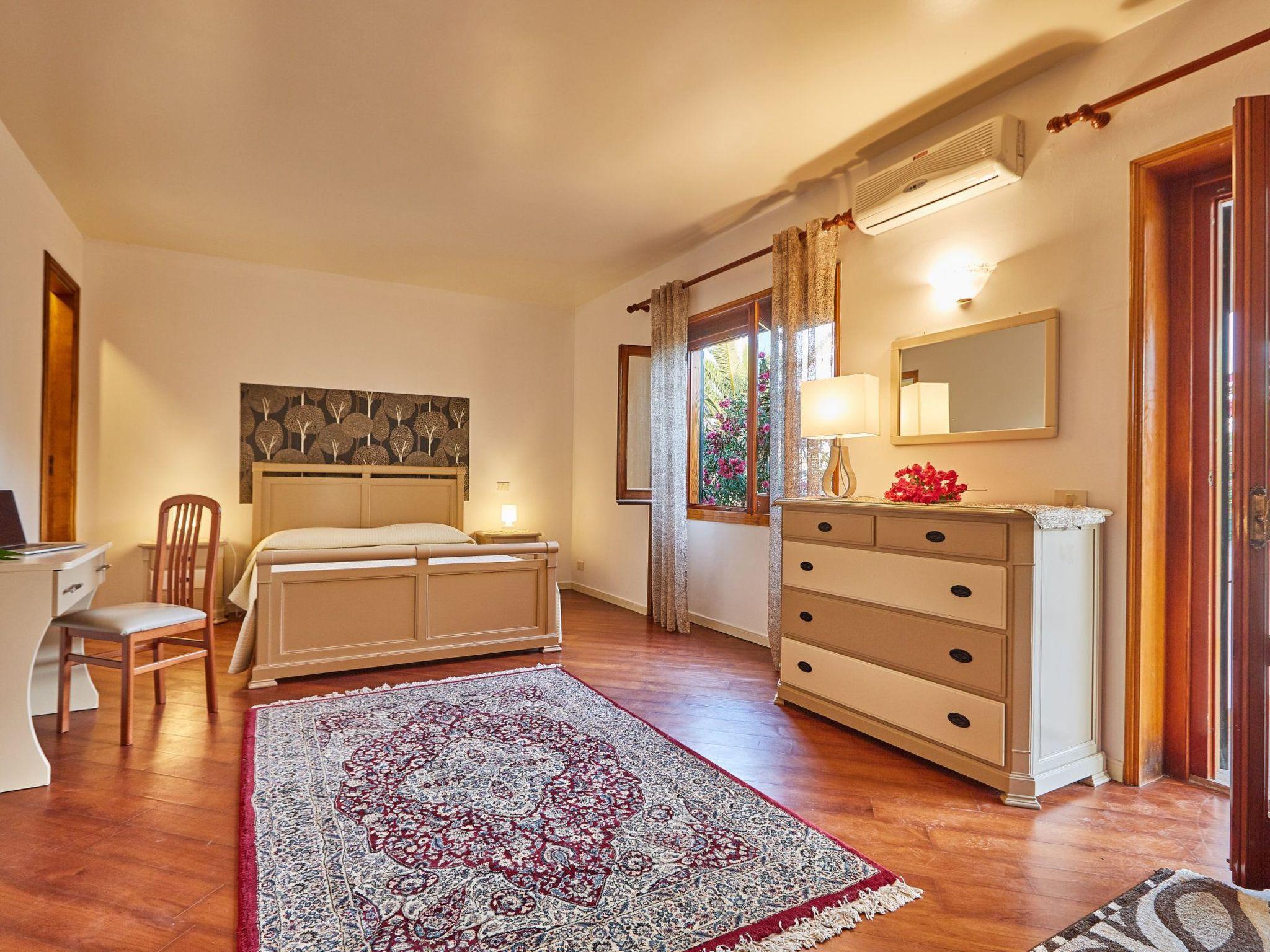 Im Erdgeschoss gibt es einen großen Tisch, an dem man für ca. 15 Personen zu Mittag oder zu Abend essen kann, einen Billardraum, einen Tischfußball, 2 Sofas und eine Stereoanlage. Hier können Sie Ihren USB-Stick oder eine CD einlegen oder über einen Schalter sowohl drinnen als auch draußen Radio hören und die Musik am Pool genießen. An der Seite dieses Raumes befindet sich der Wohnbereich mit 4 Sofas mit je 3 Sitzplätzen und einem schönen Flachbildfernseher mit Satellitenempfang, DVD, einem Regal mit Büchern und einem herrlichen Fenster mit Blick auf den umliegenden Park. Ebenfalls im Erdgeschoss befindet sich eine sehr große Küche von ca. 50 Quadratmetern mit einem 2x2 Meter großen Arbeitswürfel, in dem sich ein Herd mit 5 Brennern, ein Backofen, ein Waschbecken und verschiedene Schubladen mit diversen Utensilien (Teller, Gläser, Besteck, Töpfe, Pfannen, etc., alles für 20 Personen), ein hoher Kühlschrank mit Gefrierfach und zwei große Kühlschränke befinden. Der Küchenbereich wird durch einen Geschirrspüler und eine Waschmaschine sowie verschiedene Arbeitsplatten vervollständigt. Über eine schöne Holztreppe gelangt man in den ersten Stock mit ca. 160 Quadratmetern, von wo aus man über einen Parkettflur alle Zimmer erreicht. Die Zimmer sind alle mit Klimaanlage, WC, Bidet, Dusche, Waschbecken, Zimmer Nr. 1 ist die "schönste in einer sehr feinen Art und Weise mit Perserteppich und Schlafsofa eingerichtet und genießt eine große Terrasse mit Blick auf das Meer mit einem weißen polirattan Lounge (gemeinsam mit 2 anderen Zimmern) mit einem herrlichen Blick auf den Park eingerichtet, dann gibt es 2 Einzelzimmer und 5 weitere elegant eingerichtete Doppelzimmer, die alle mit Blick auf den Park oder Schwimmbad.