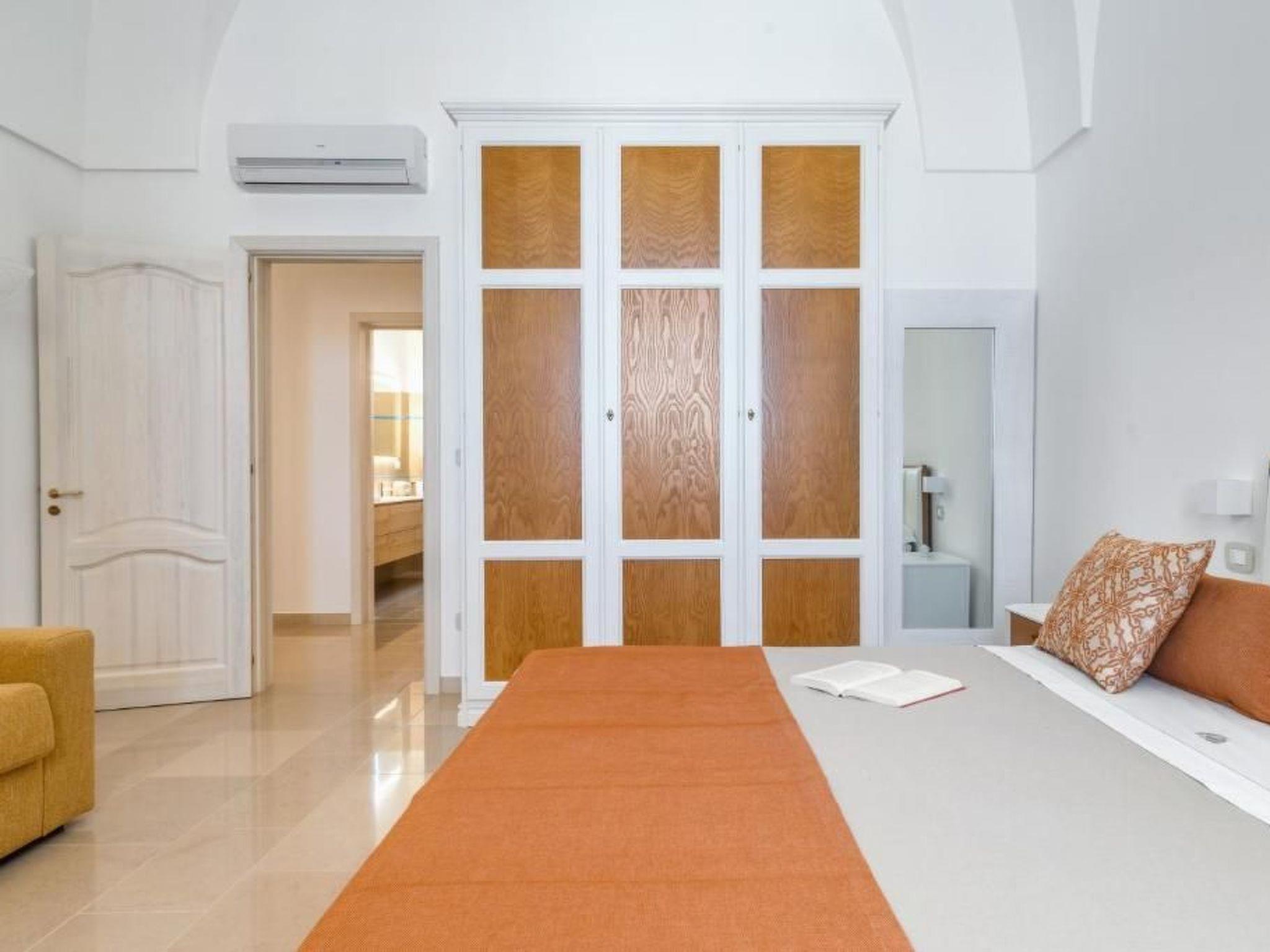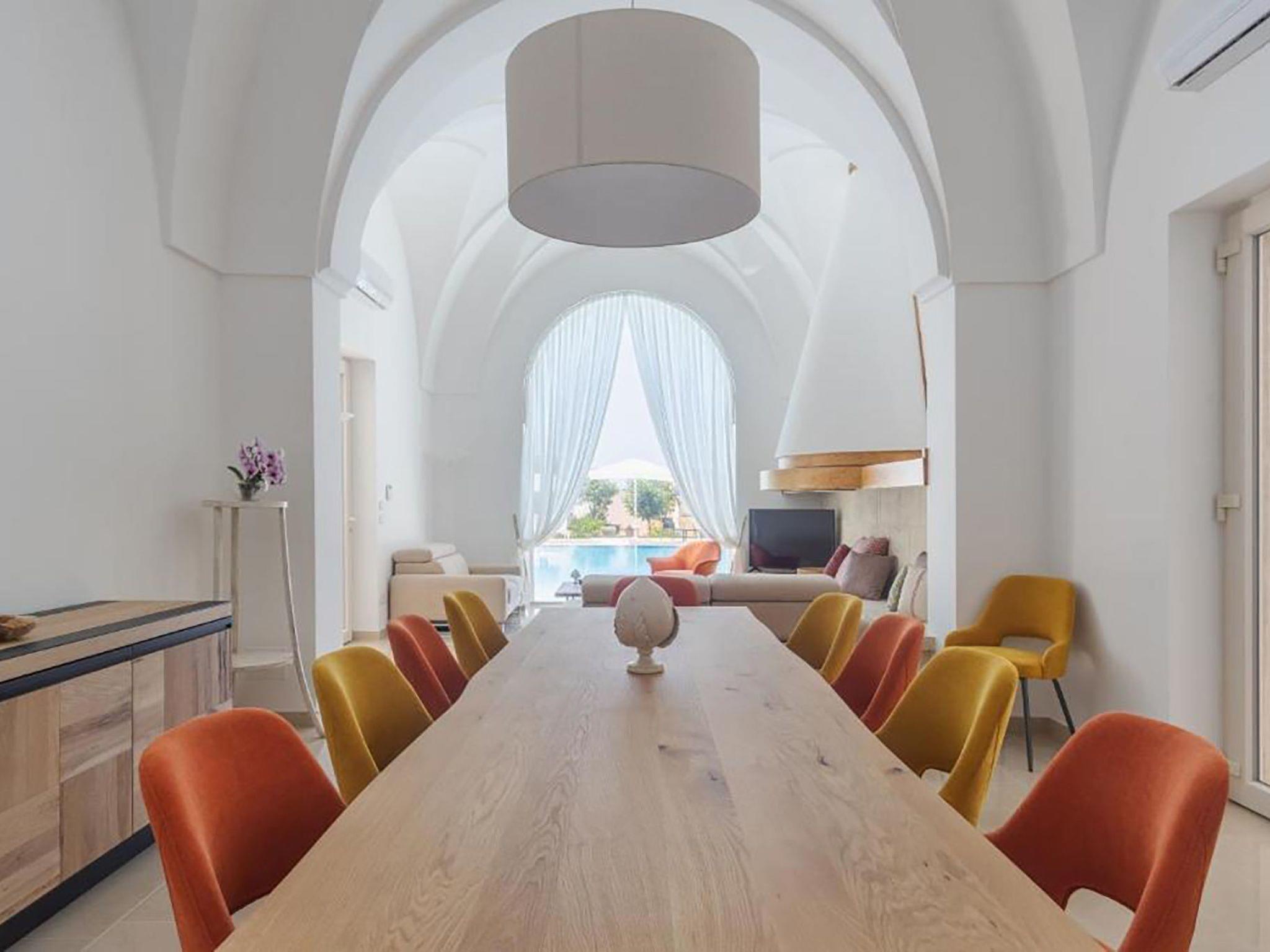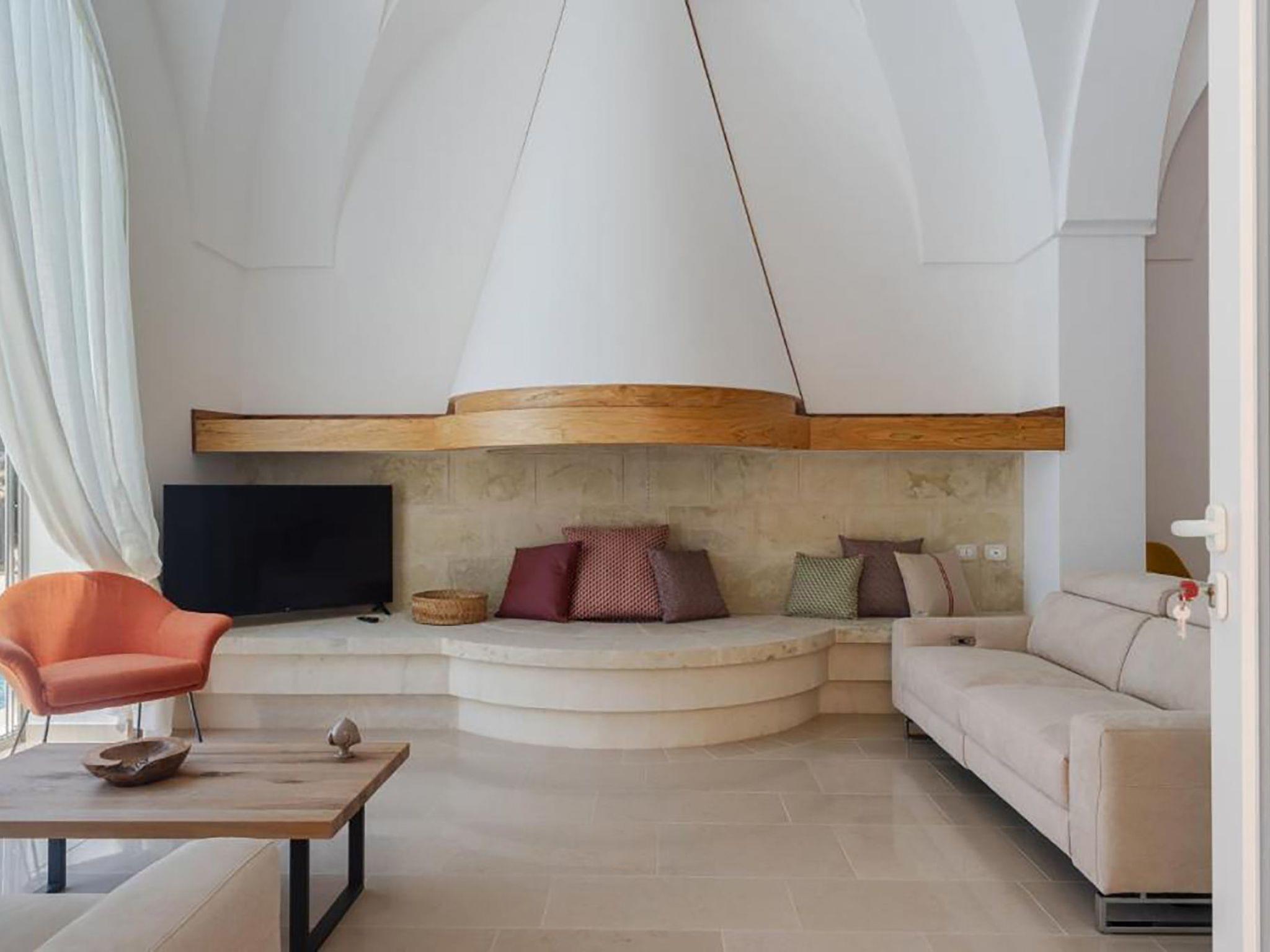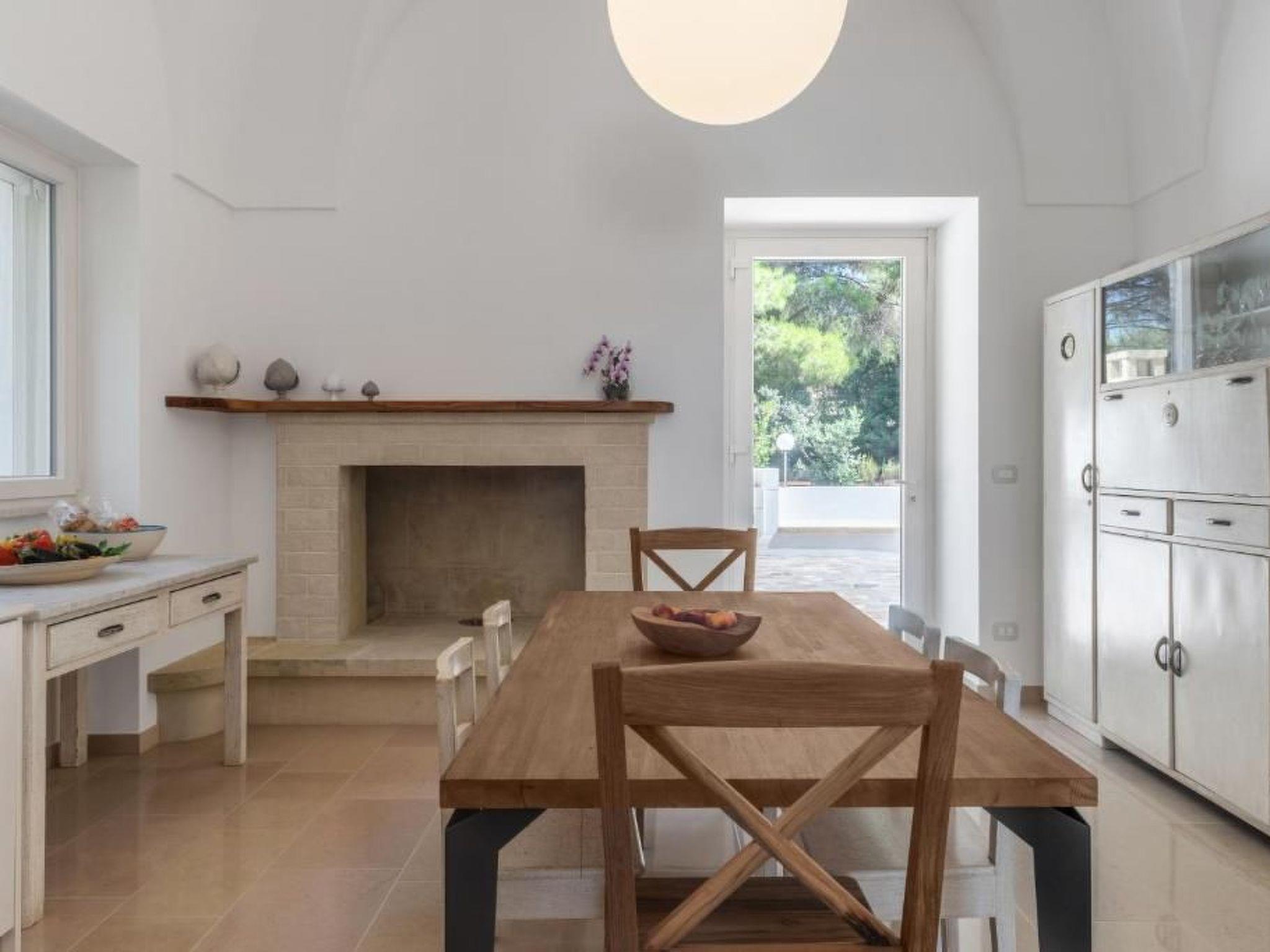 Im Inneren der Villa befindet sich ein großes, charakteristisches Wohnzimmer mit sternförmig gewölbten Decken und Blick auf den Pool, eine traditionelle salentinische Küche mit einem charmanten Kamin, der im Sommer einladend und in den Wintermonaten funktionell ist. Der Schlafbereich umfasst drei geräumige Schlafzimmer, jedes mit Sterngewölbe, Panoramafenstern, einem Doppelbett und einem Schlafsofa. Außerdem gibt es drei große Badezimmer und eine Waschküche mit Waschbecken und Waschmaschine, die die Innenräume vervollständigt.