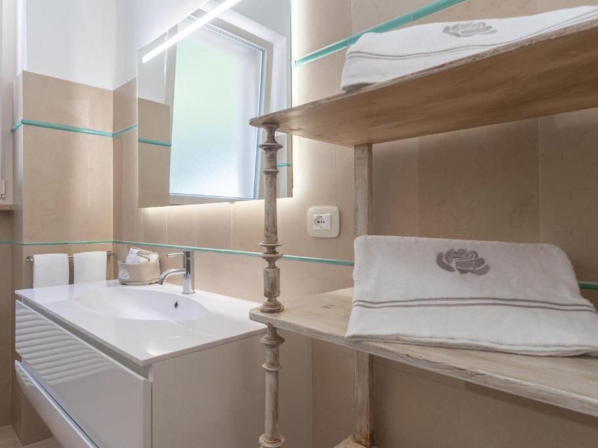 VIP - Exclusive - Villa Rosa Mediterranea - befindet sich auf über achttausend Quadratmetern mediterraner Macchia. Inmitten der für den Salento typischen Myrten und aromatischen Kräuter befindet sich ein majestätischer Swimmingpool von mehr als 200 Quadratmetern mit einer Mindesttiefe von 60 cm für Kinder, einer durchschnittlichen Tiefe von 110 cm und einer maximalen Tiefe von 240 cm für diejenigen, die gerne vom Sprungbrett aus tauchen. Neben dem herrlichen Pool gibt es einen luxuriösen Jacuzzi, der ideal für entspannende Momente ist. Der Außenbereich ist mit Liegestühlen, Sonnenschirmen, einer großen Dusche und einem Bad ausgestattet. Im hinteren Bereich befindet sich ein Grillplatz, ideal für Grillfans.