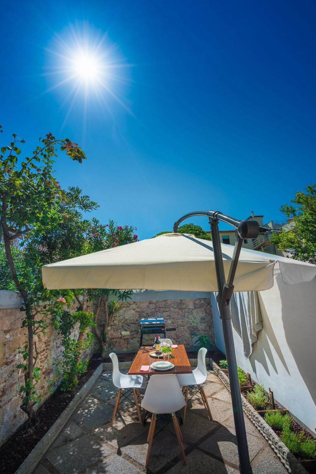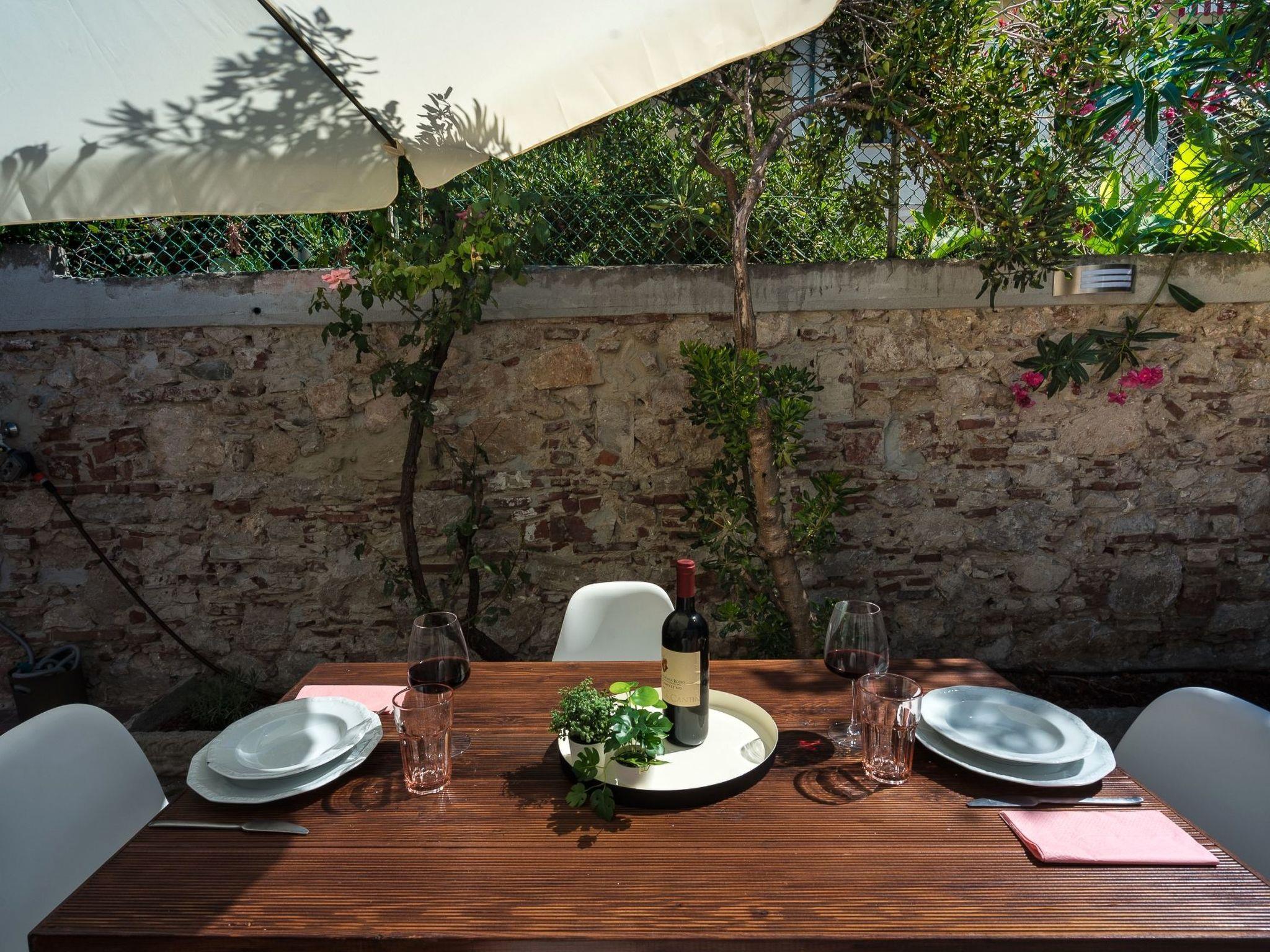 Der Außenbereich ist für Mahlzeiten im Freien ausgestattet und mit mediterranen Düften angereichert, mit einer schönen Außendusche.