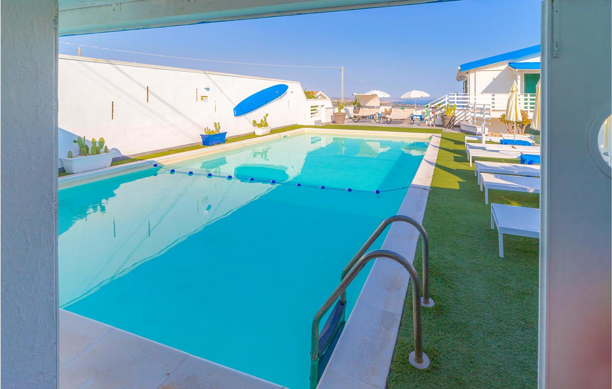Villa Sara ist ein Ferienhaus auf einem Plateau mit Blick auf das Mittelmeer, etwa 2 km von Marina di Ragusa entfernt, und bietet Entspannung für Ihren Urlaub. Gepflegter Garten mit einem schattigen Teil und mit Tisch und Grill für Mahlzeiten im Freien ausgestattet. Umgeben von einem Panoramabalkon, überrascht der Wohnbereich/ Küche mit einer Glaswand Sie, die geöffnet und in eine offene Veranda mit Meerblick verwandelt werden kann. Den Gästen steht ein Pool zur gemeinsamen Nutzung zur Verfügung, mit Liegestühlen, Sonnenschirmen und einem weiteren Badezimmer mit Außendusche. Marina di Ragusa liegt im Kontext von Stränden, die sich durch feinen Sand und kristallklares Wasser auszeichnen. Für diejenigen, die einen lebhafteren Abend verbringen möchten, bietet Marina di Ragusa auch ein reiches Nachtleben. Auf dem Platz und in den charakteristischen Straßen der Altstadt gibt es viele Restaurants, Pizzerien und Eisdielen. Die Stadt hat auch einen neuen Yachthafen. Flughafen in Comiso (15 Km). Marina di Ragusa befindet sich in einer strategischen Position, um die Städte des hybläischen Barocks , Ragusa Ibla, Modica, Scicli und Comiso in Umkreis von 20 km zu besuchen. Catania, Syrakus und Noto (100 km).