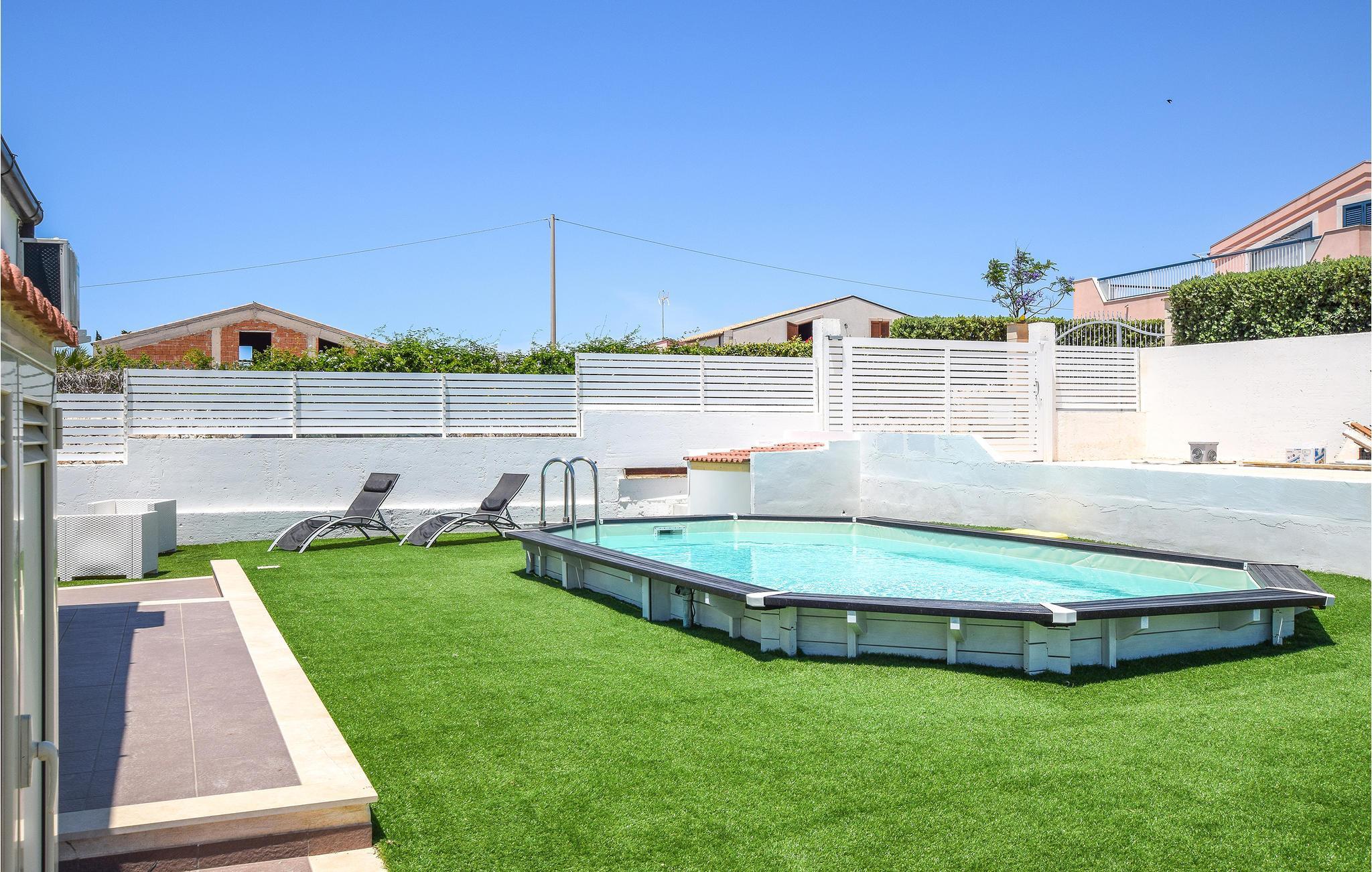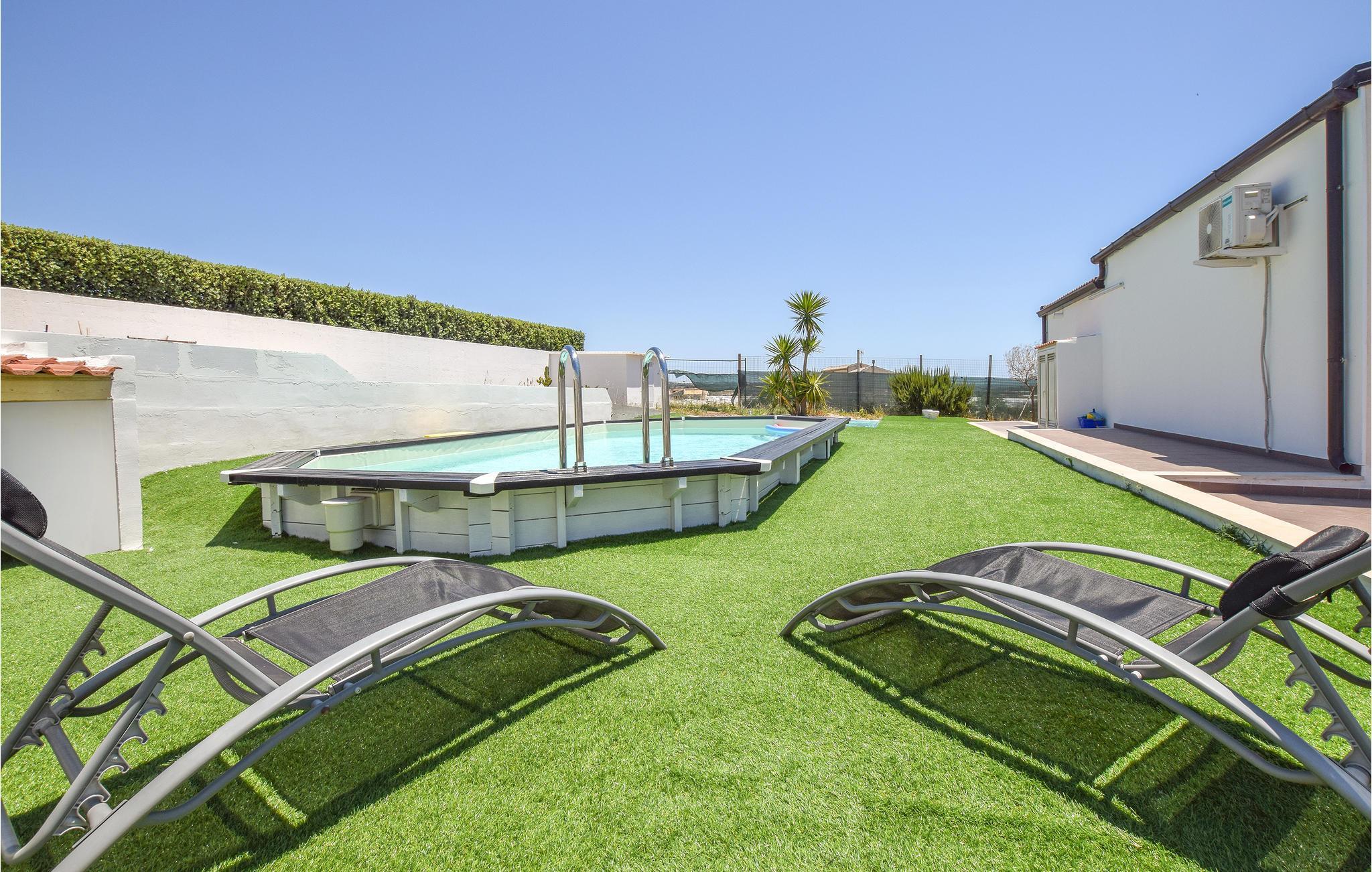 Der Außenbereich befindet sich rund um den halb unterirdischen Pool, sodass Sie an den Rändern sitzen können. Dank der Liegestühle, Tische und Sonnenschirme können Sie hier wunderbar entspannen.