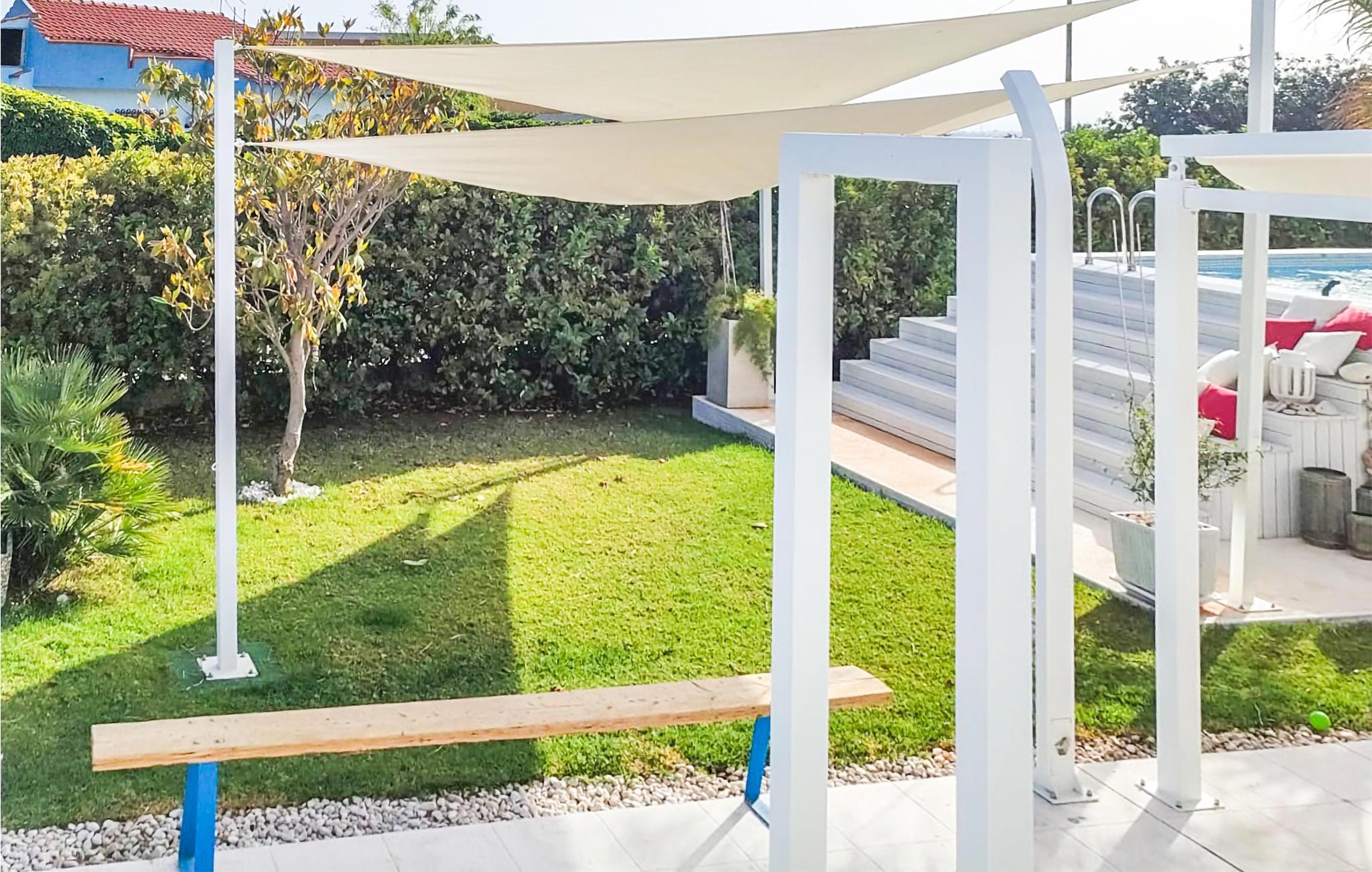 Das Haus befindet sich auf einem gepflegten Grundstück mit Rasen, Blumen und einheimischen Bäumen, das Sie direkt mit Ihrem eigenen Auto erreichen können. Im Garten erwartet Sie ein Bereich mit Liegestühlen und Gartentischen und einem exotisch aussehenden Pavillon, der einen Whirlpool für 5 Personen beherbergt. Vom Pool im Westen können Sie fabelhafte Sonnenuntergänge bewundern.