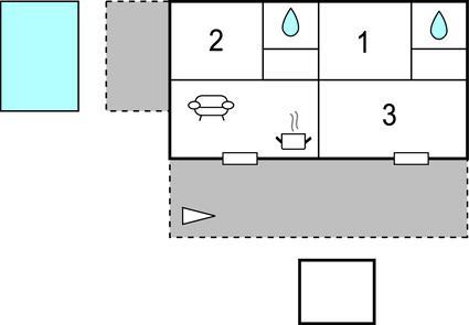 Badezimmer 4m2 (nr. 1) - WC. Warmes und kaltes Wasser. Dusche