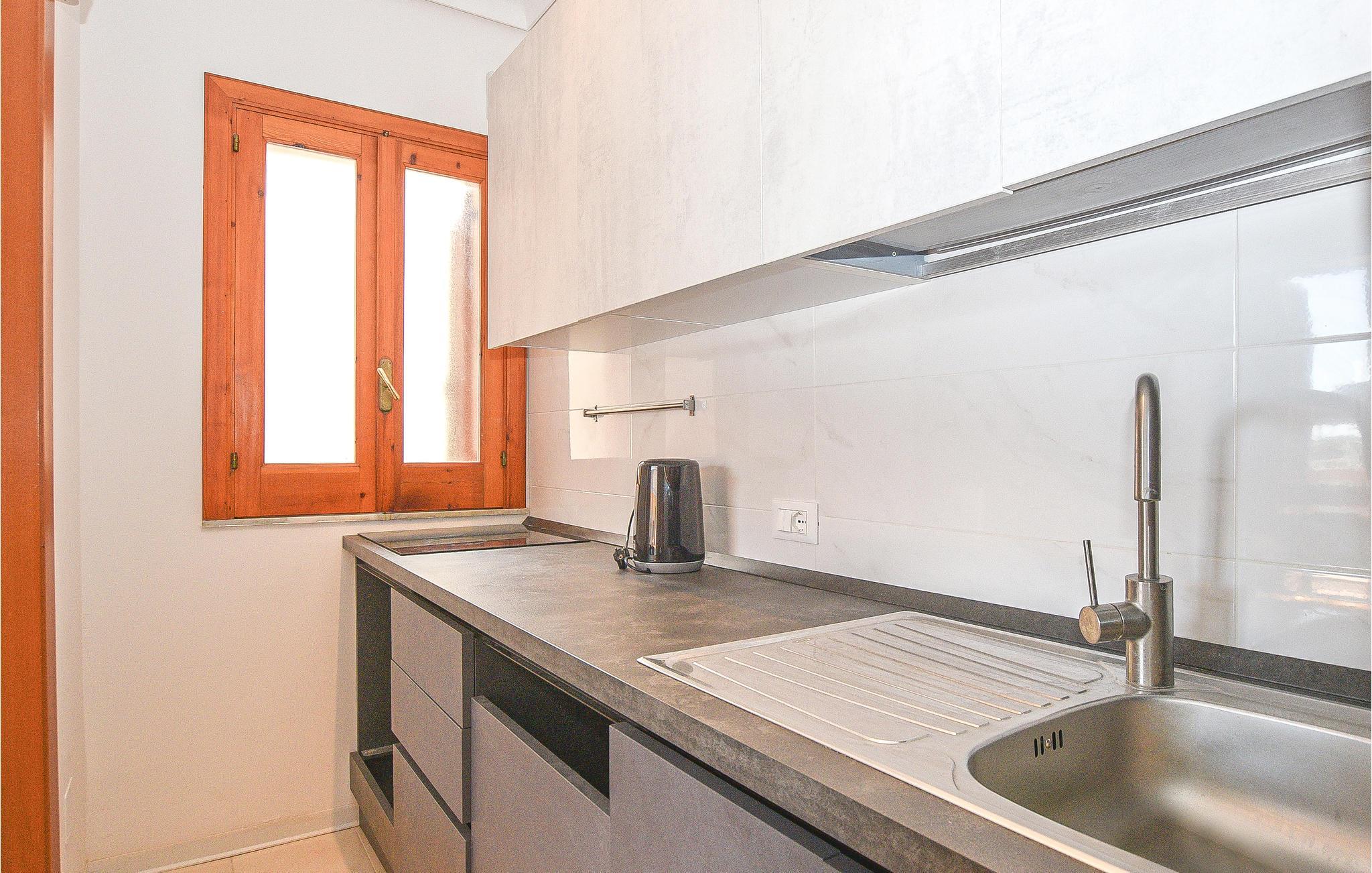 Die Küchenzeile verfügt über heißes Wasser