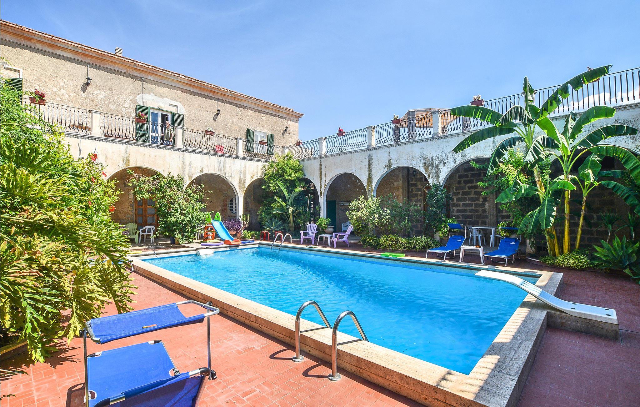 Dieses Urlaubsdomizil ist Teil eines alten Bauernhauses aus dem 19. Jahrhundert und bietet einen schönen Blick auf das beeindruckende Schloss Donnafugata. Fühlen Sie sich wie zu Hause, während Sie in der geräumigen Küche leckere Pastagerichte zubereiten und fröhliche Mahlzeiten am einladenden Esstisch genießen. Veranstalten Sie harmonische Spieleabende und planen Sie Ihre Unternehmungen bei einem Glas Wein.