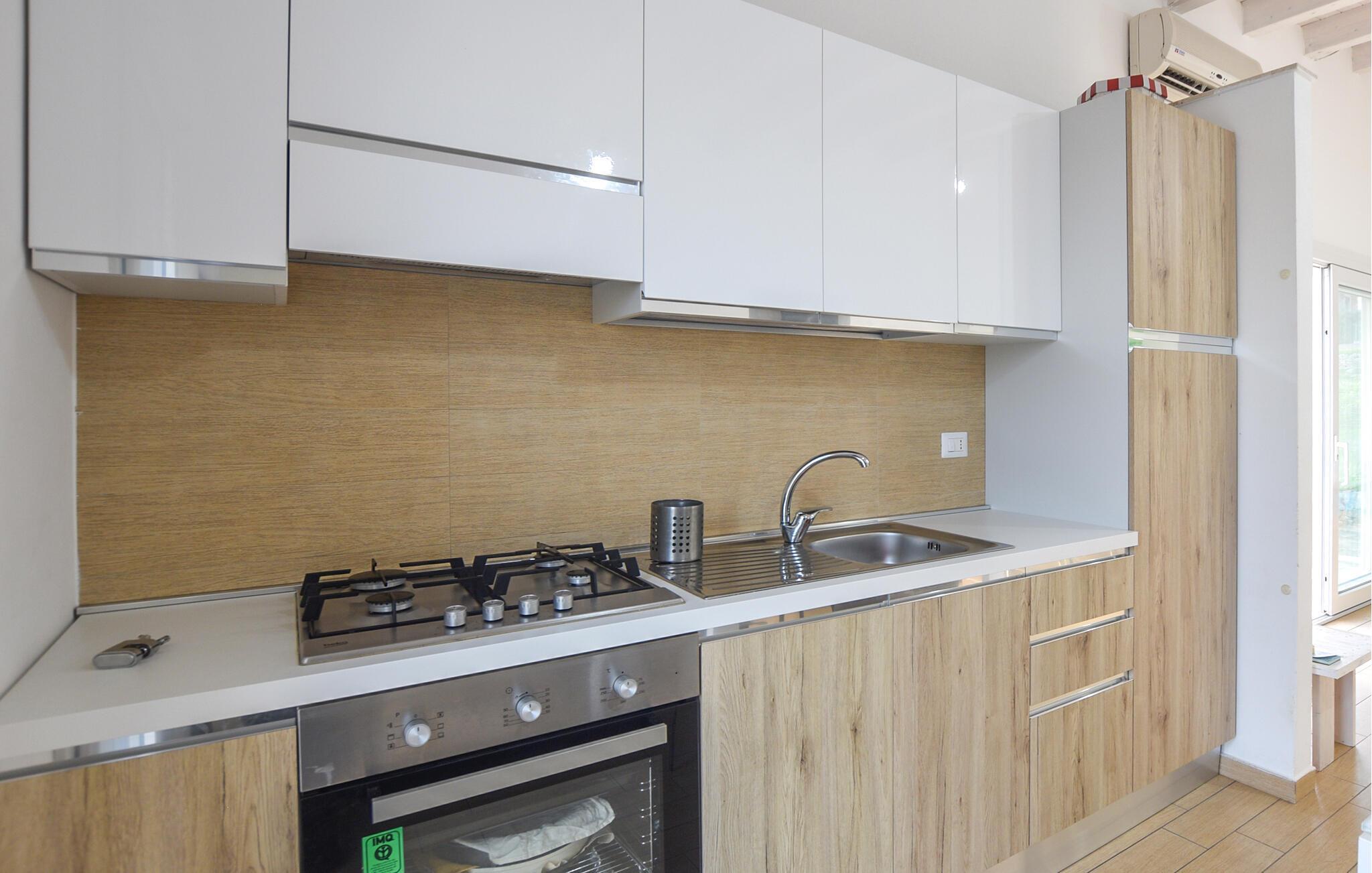 Die Küchenzeile verfügt über heißes Wasser