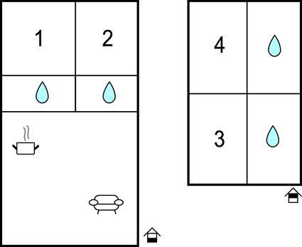 Badezimmer 4m2 (nr. 4) - WC. Warmes und kaltes Wasser. Dusche