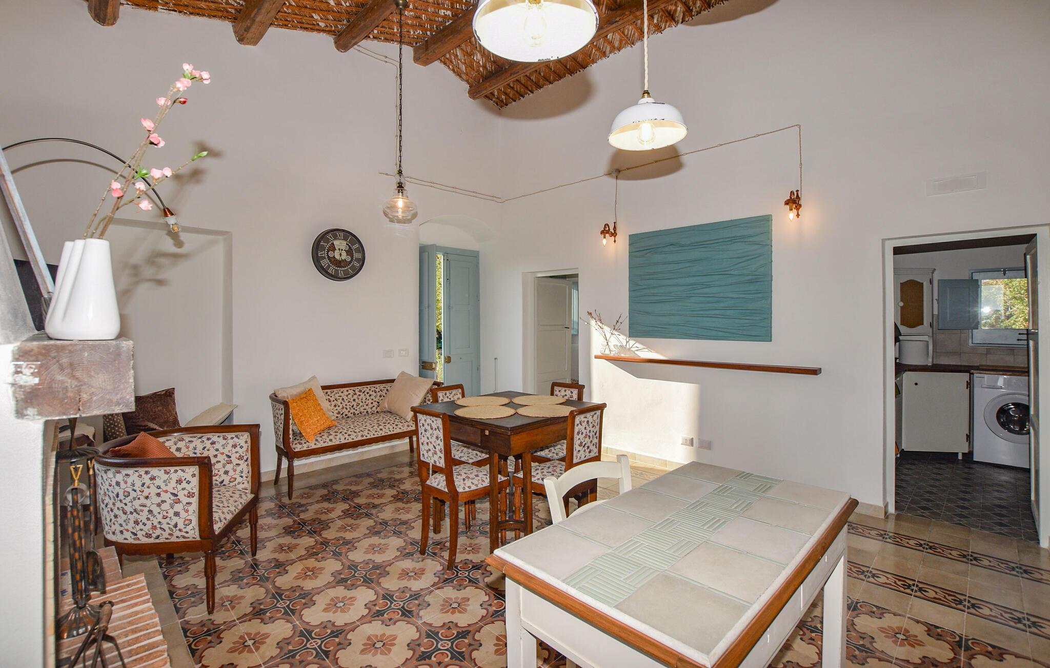Das einladende Haus empfängt Sie in idyllischer Lage mit Blick auf die pittoreske Landschaft des sizilianischen Südens und das Meer. Freuen Sie sich auf gemütliche Räume und eine wohnliche und moderne Einrichtung. Entspannen Sie hier in angenehmem Rahmen, genießen Sie gemeinsame Mahlzeiten in der Wohnküche unter aparten Holzdecken, lassen Sie den Blick in die Ferne schweifen und machen Sie es sich abends nach erlebnisreichen Tagen zusammen gemütlich.