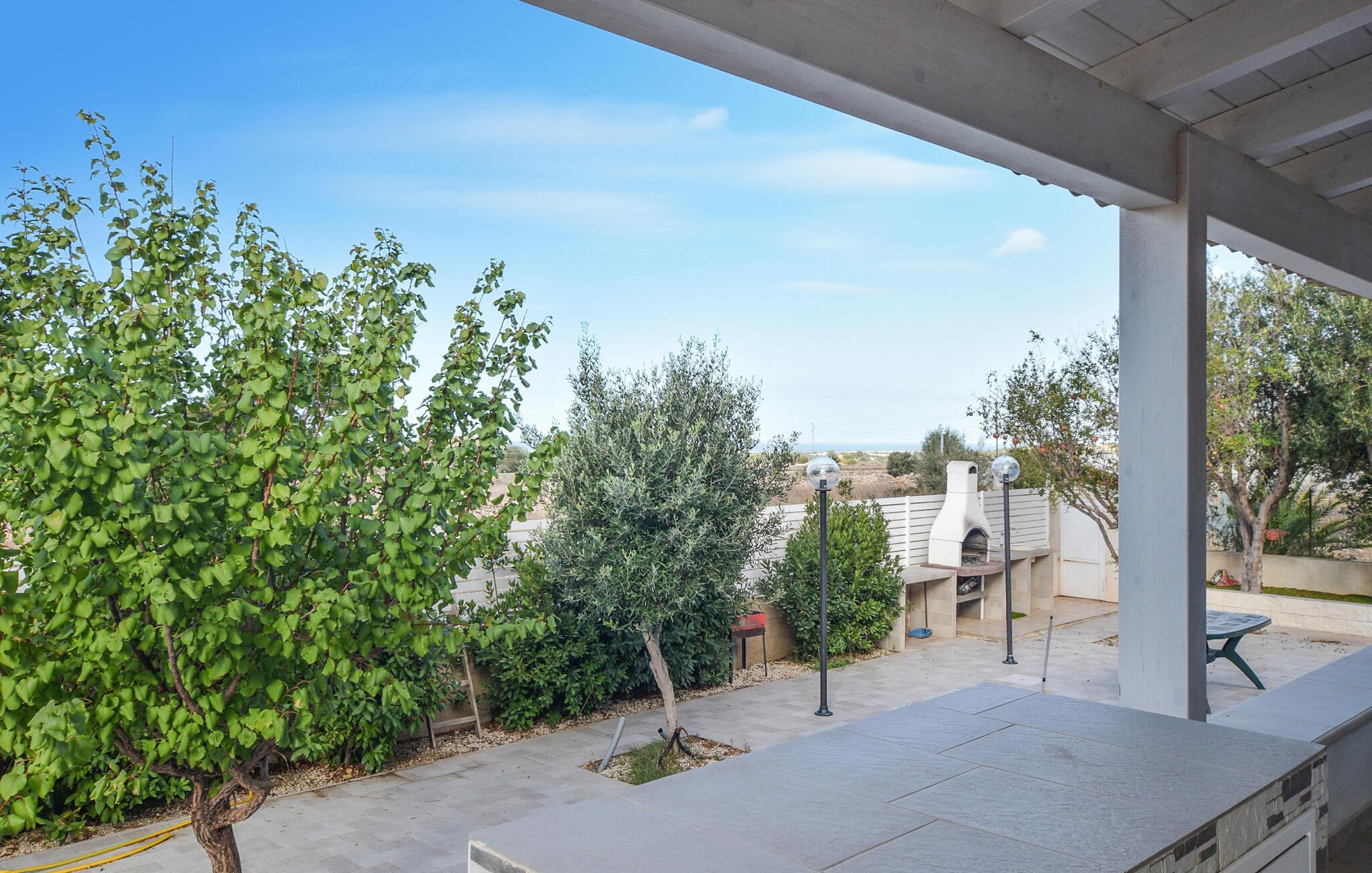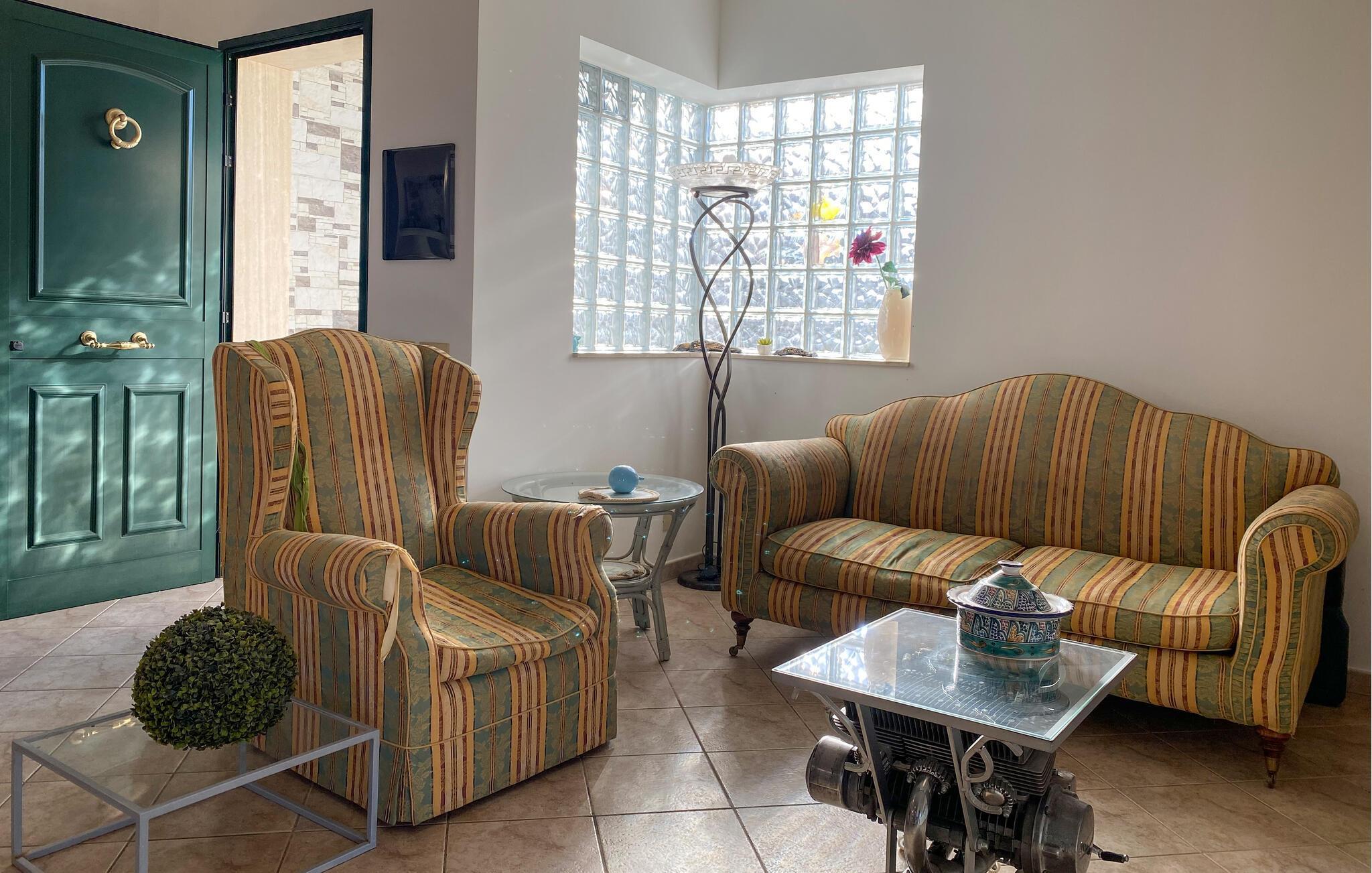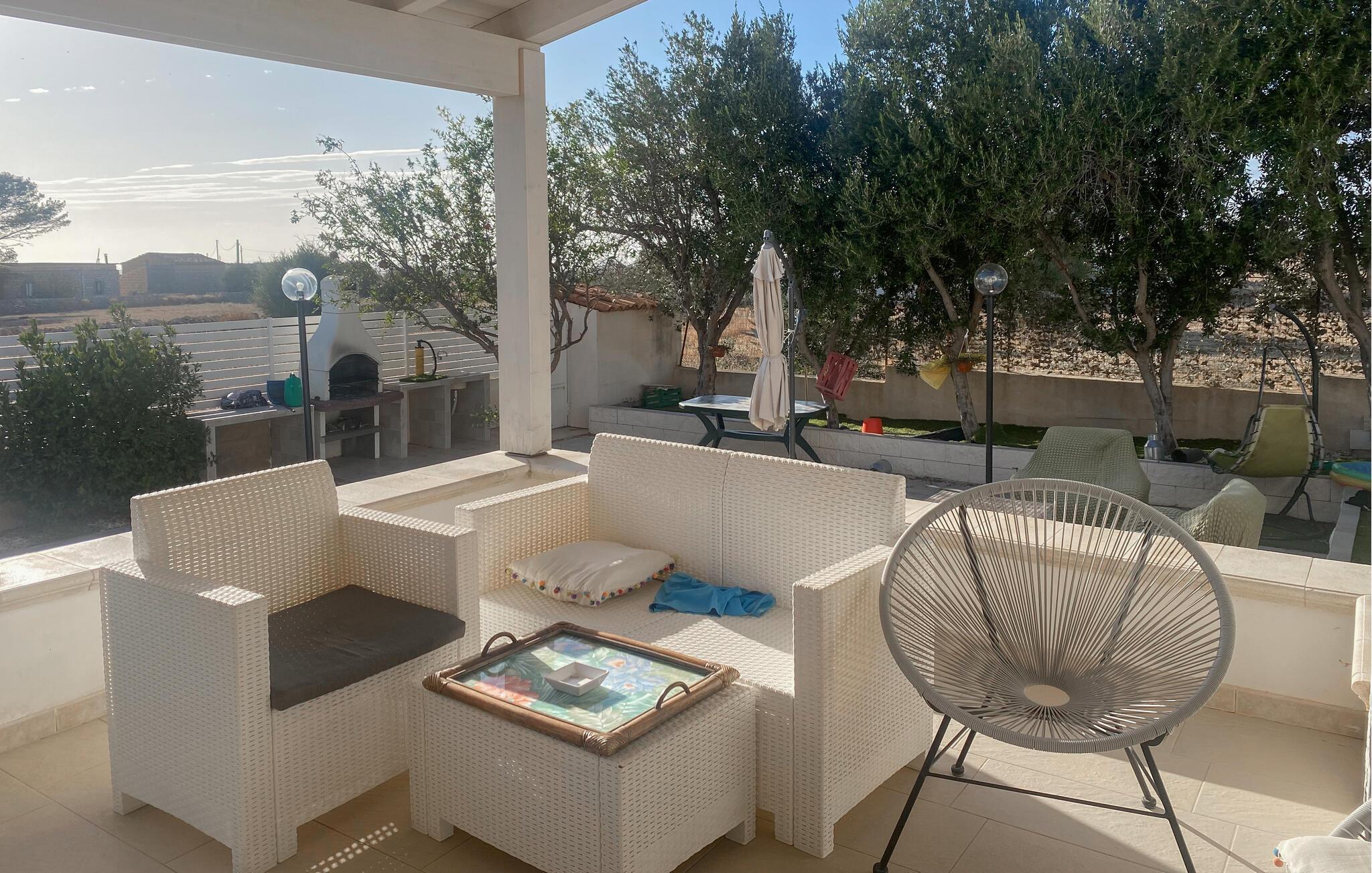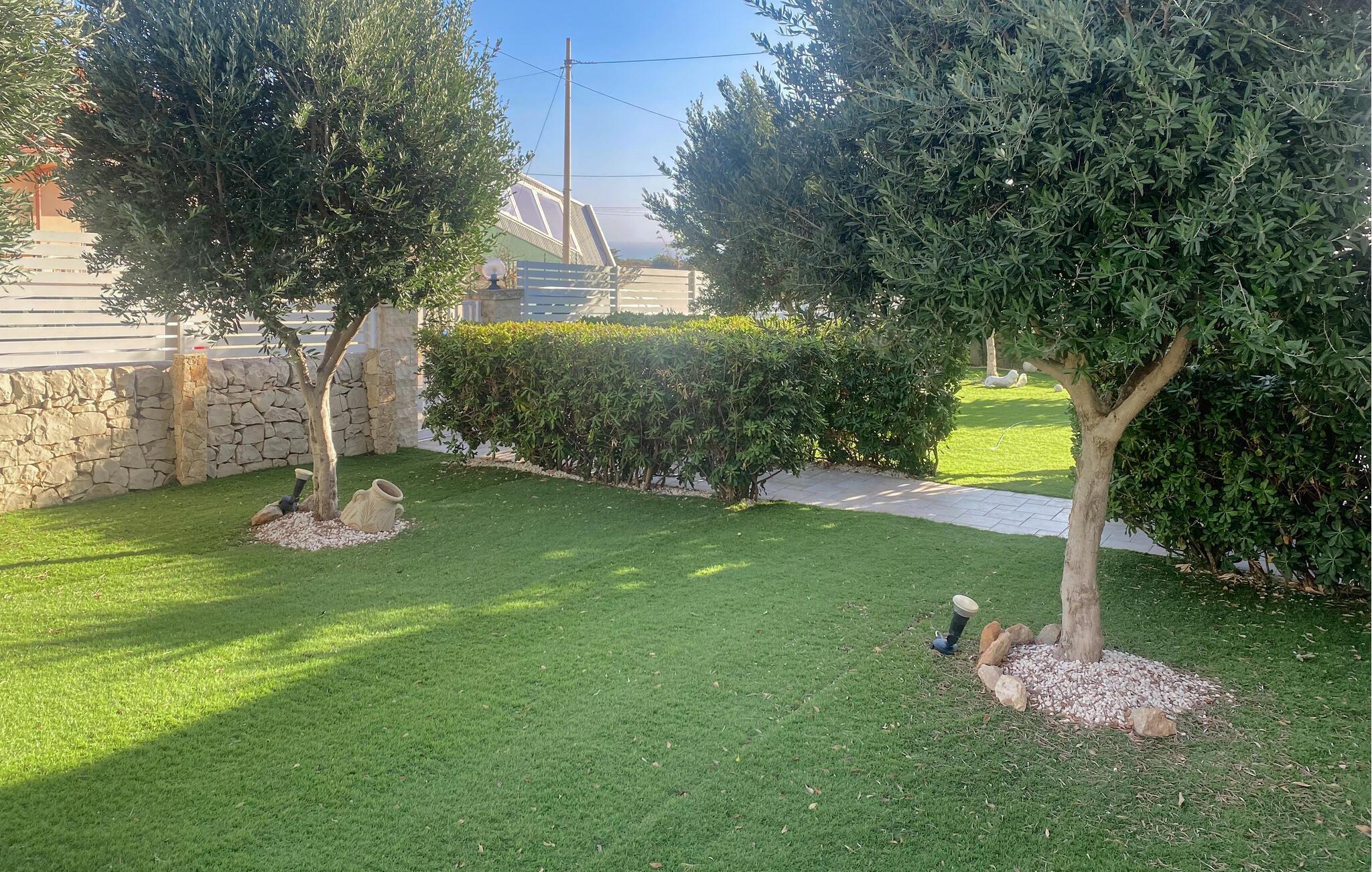Willkommen in dem einladenden Haus, das seine Gäste mit wohnlichen Räumen mit schönen Holzelementen begrüßt. Bereiten Sie ein leckeres Frühstück vor und genießen Sie es im gemütlichen Wohnbereich oder im Freien, umgeben von einer grünen Oase mit Olivenbäumen und Palmen.