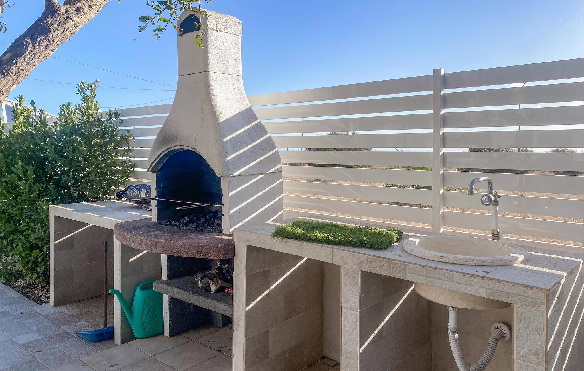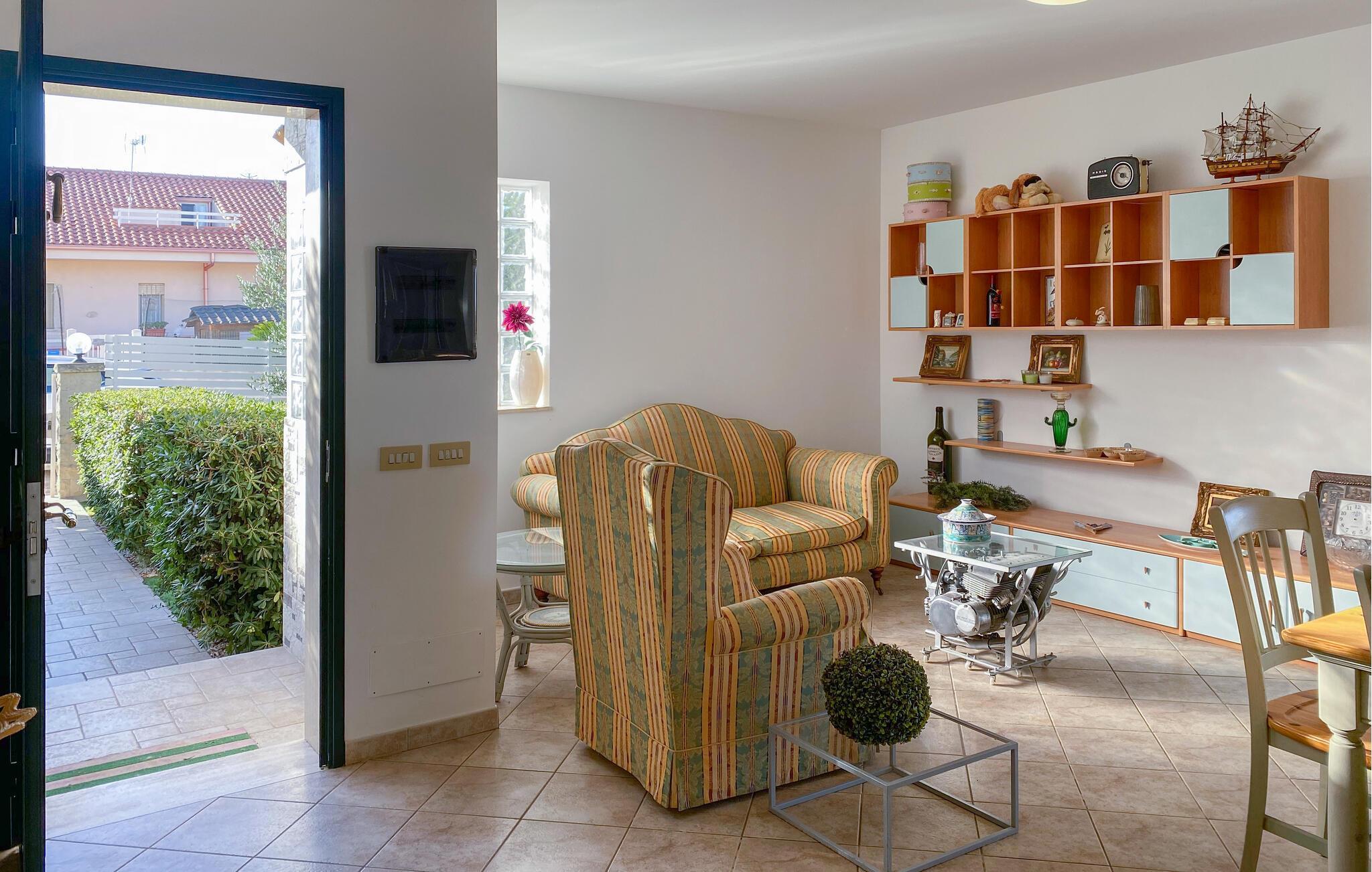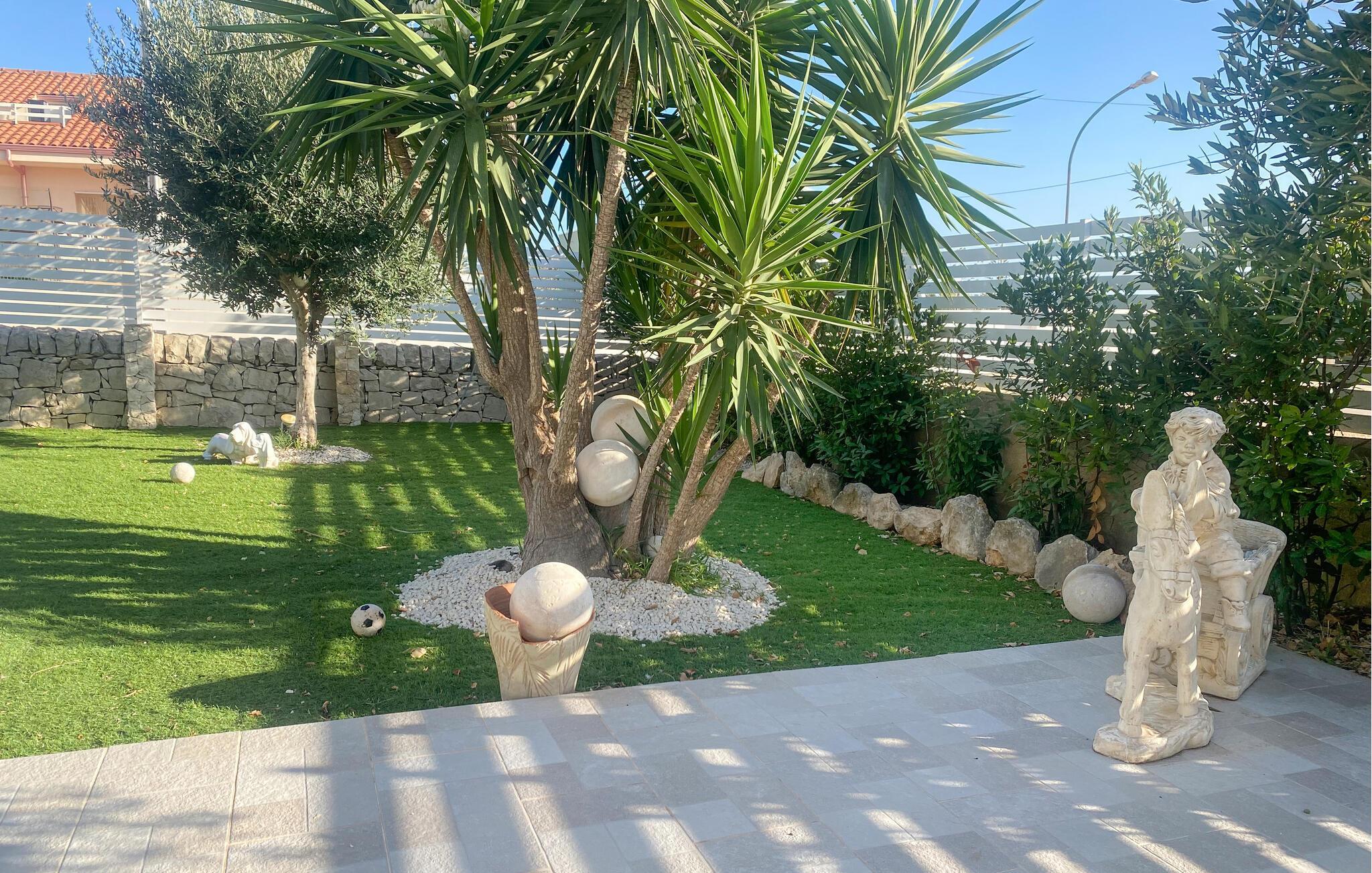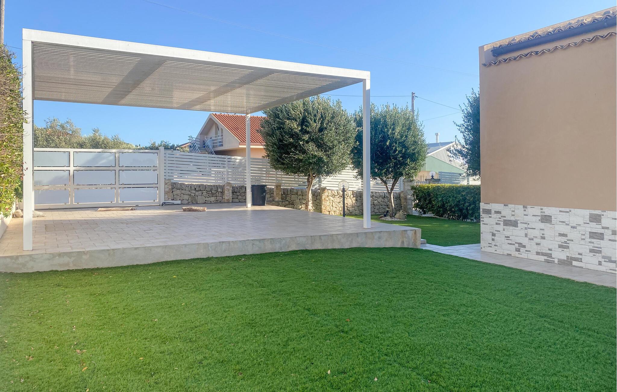 Willkommen in dem einladenden Haus, das seine Gäste mit wohnlichen Räumen mit schönen Holzelementen begrüßt. Bereiten Sie ein leckeres Frühstück vor und genießen Sie es im gemütlichen Wohnbereich oder im Freien, umgeben von einer grünen Oase mit Olivenbäumen und Palmen.