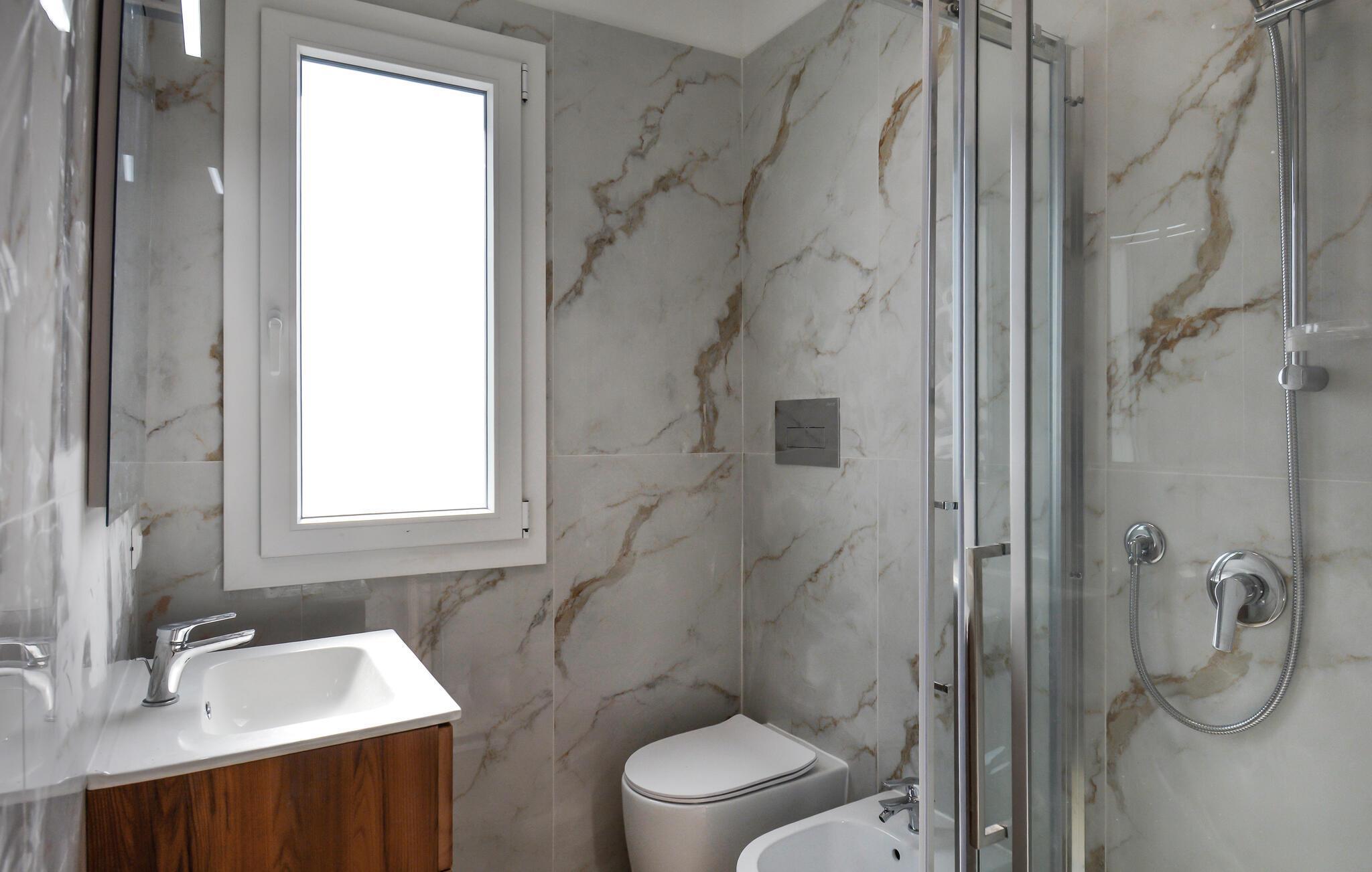 Badezimmer 4m2 (nr. 2) - WC. Warmes und kaltes Wasser. Dusche