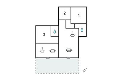 Badezimmer 4m2 (nr. 1) - WC. Warmes und kaltes Wasser. Dusche
