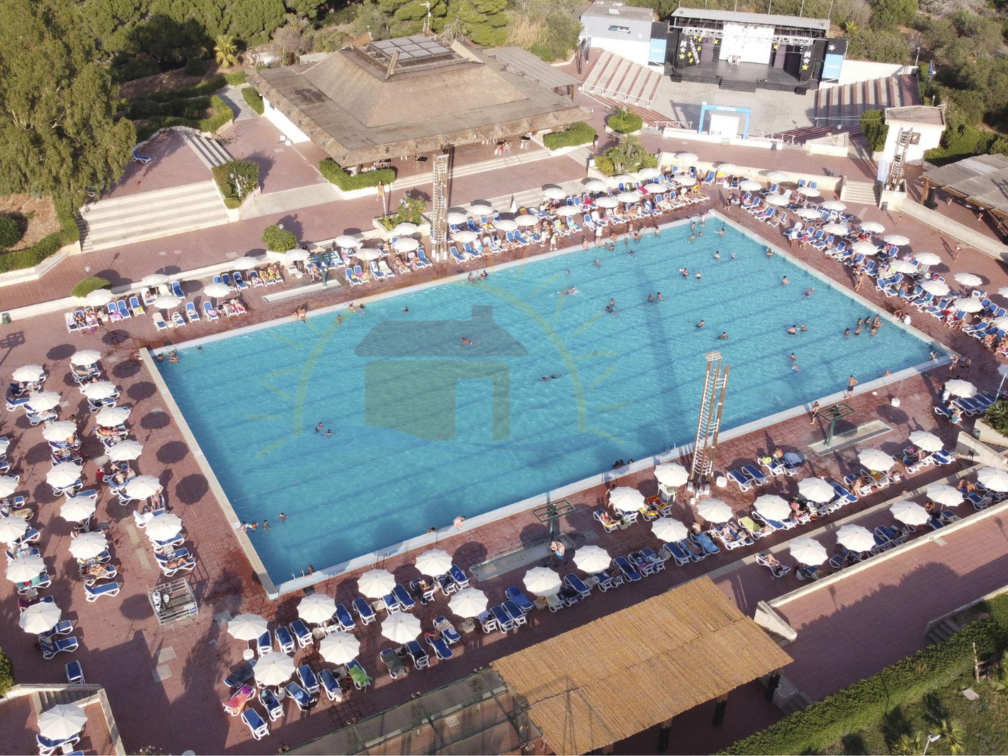 Die Wohnung ist 2 Schritte vom Hotel, dem olympischen Schwimmbad, dem Miniclub und der Haltestelle des Shuttlebusses zum Privatstrand entfernt. -