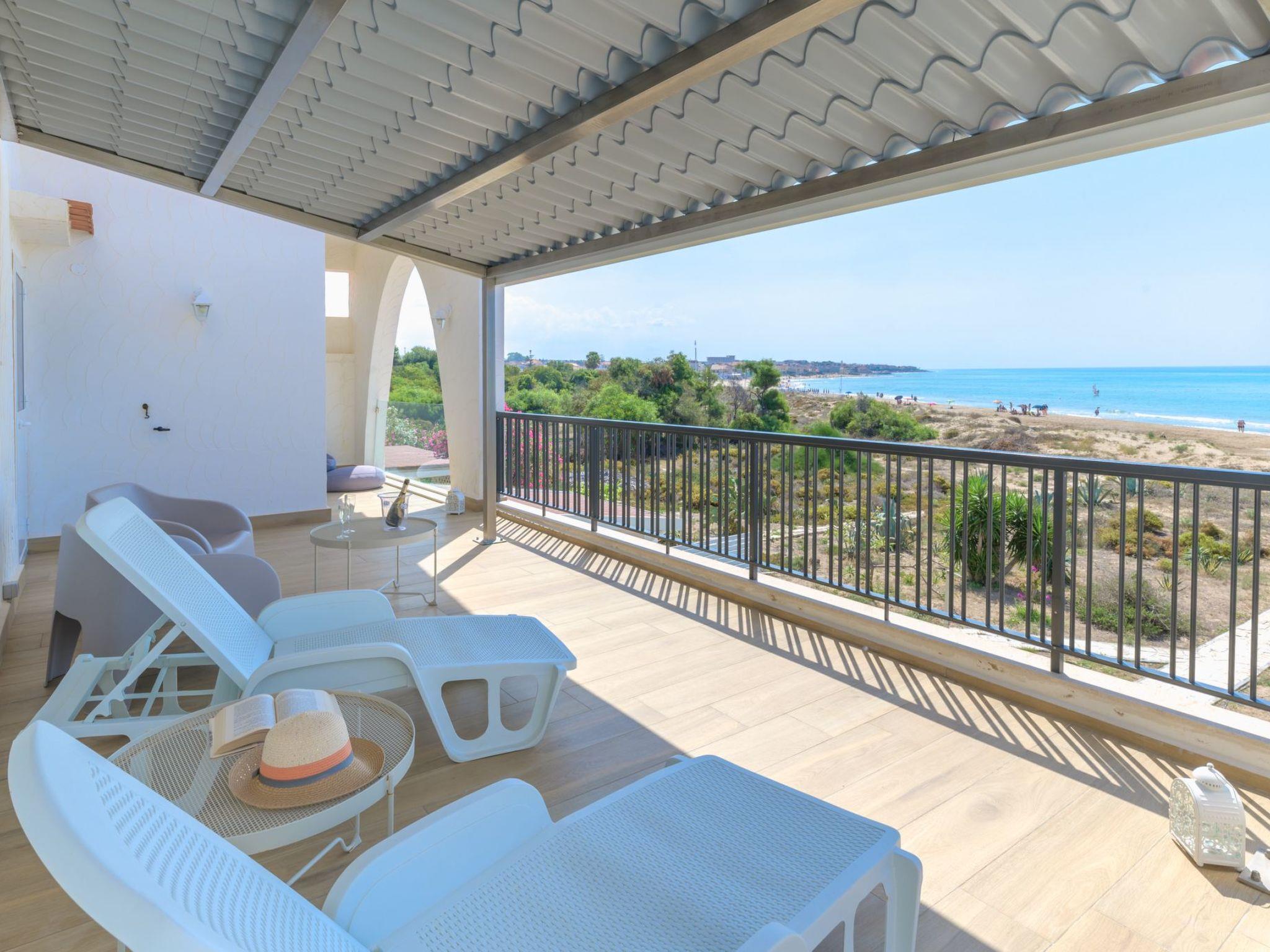 Außenbereich Die Villa, die sich über zwei Etagen erstreckt, verfügt über zahlreiche möblierte Außenbereiche (210 m²). Eine große Terrasse mit herrlichem Meerblick ist mit Gartenmöbeln und einem Esstisch ausgestattet und hat einen direkten Zugang zum Strand. Eine Grünfläche (60 Quadratmeter) mit Blumenbeeten und Sukkulenten. Eine schöne möblierte Terrasse im ersten Stock mit Panoramablick auf die Caucana-Küste. Eine kleine Terrasse im ersten Stock mit Waschküche und Waschmaschine.