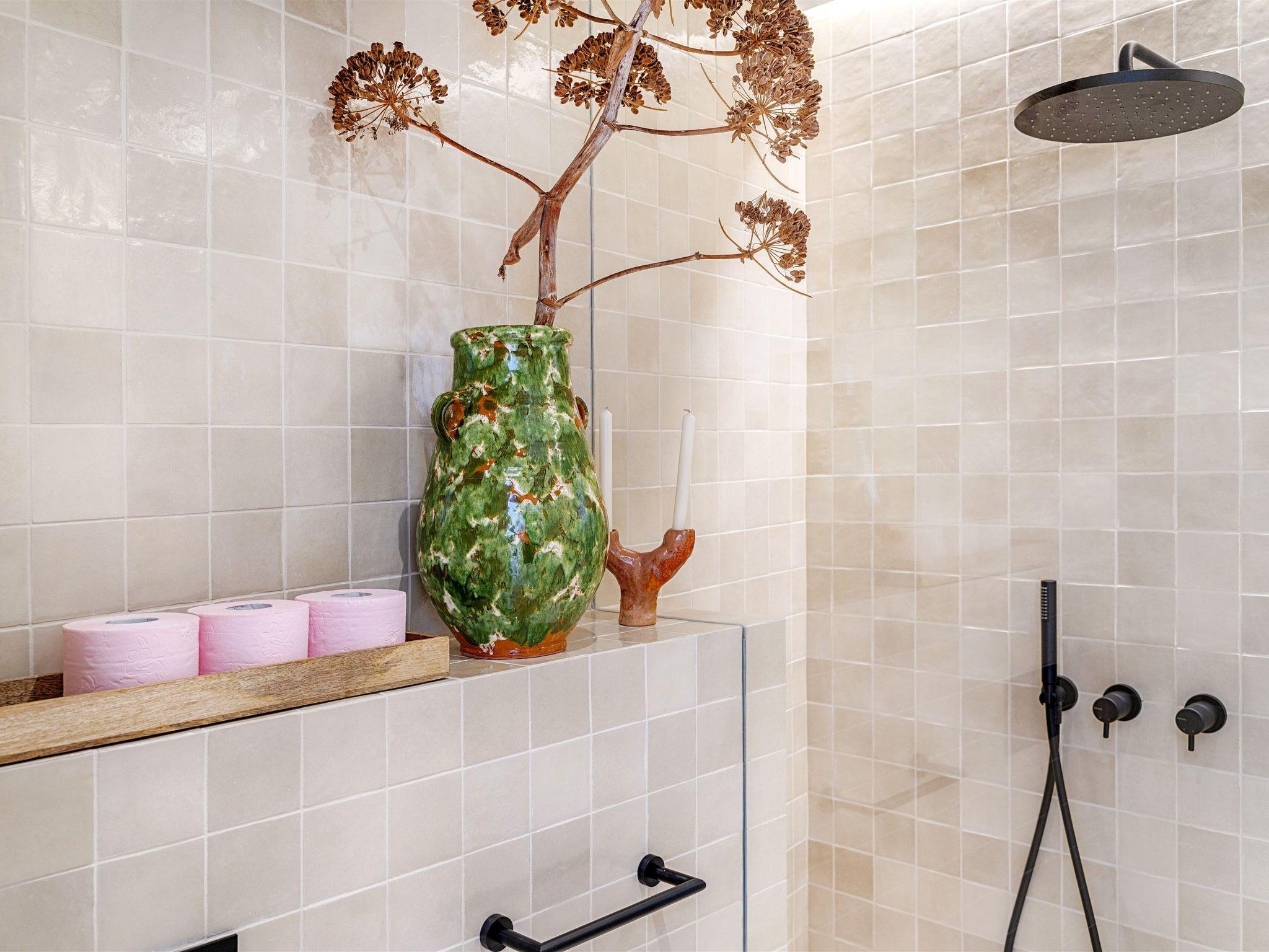 Ein großes, luxuriöses Badezimmer mit Dusche.