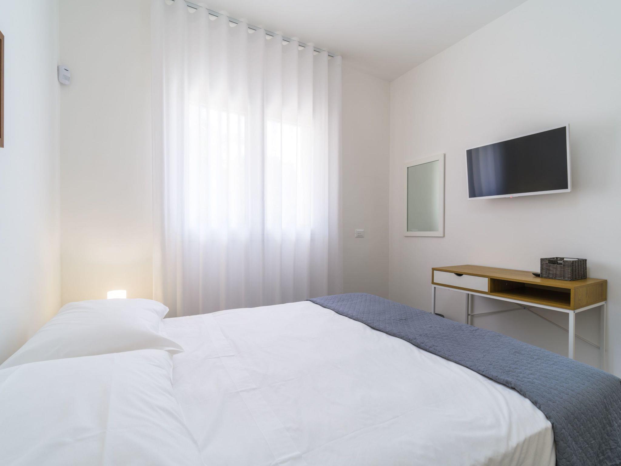 Der Schlafbereich besteht aus 4 Schlafzimmern: ein Schlafzimmer mit Doppelbett (dessen Betten getrennt werden können), mit Blick auf den Poolbereich, mit einem Einzelbett; ein Schlafzimmer mit Doppelbett und eigenem Bad mit Dusche; ein Schlafzimmer mit zwei Einzelbetten (deren Betten verbunden werden können); ein Schlafzimmer mit Doppelbett und Smart-TV.