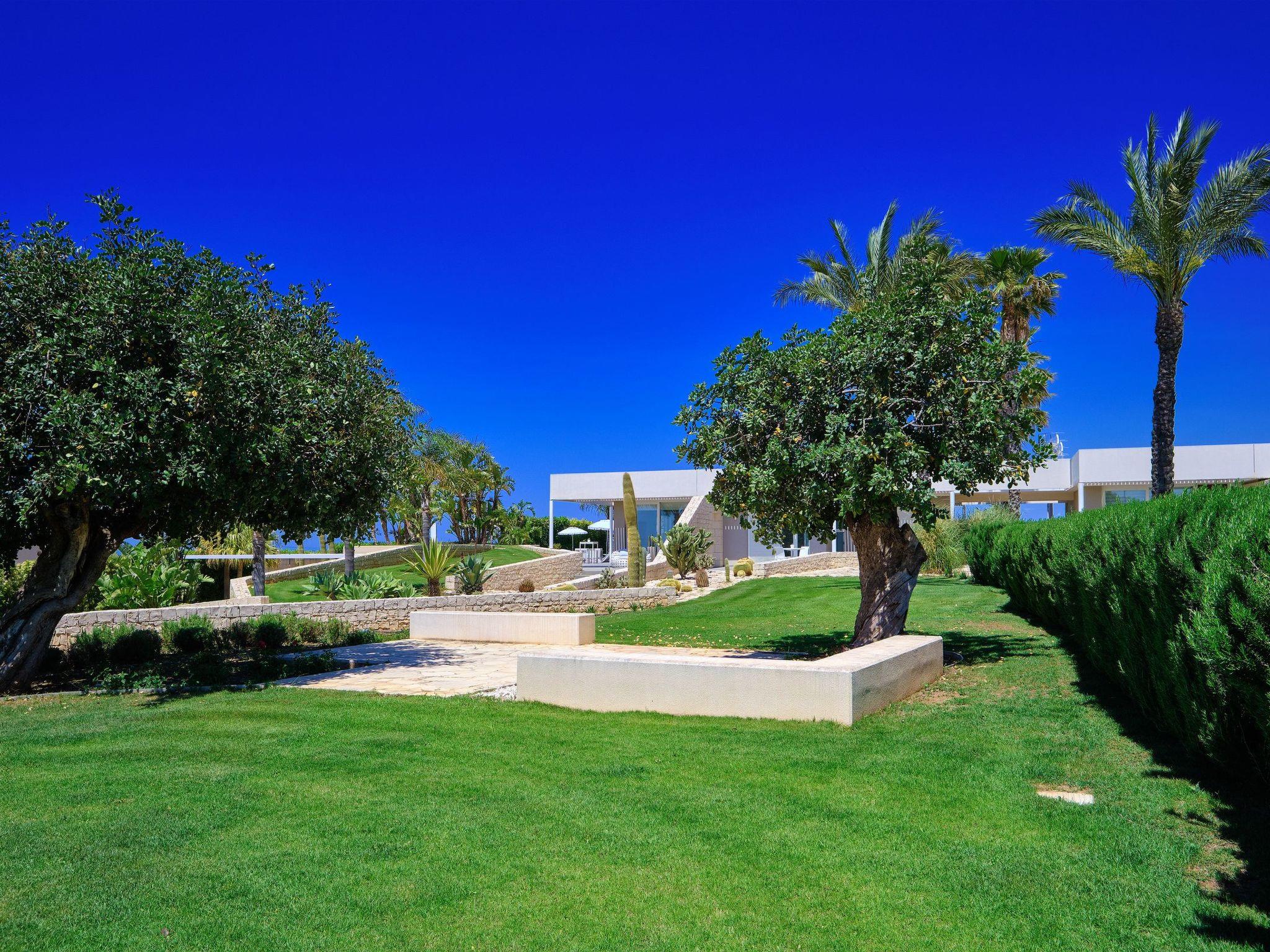 Villa Anthea befindet sich auf einem großen Grundstück und wird von einem Garten mit zahlreichen Palmen, Olivenbäumen und Blumen umgeben.