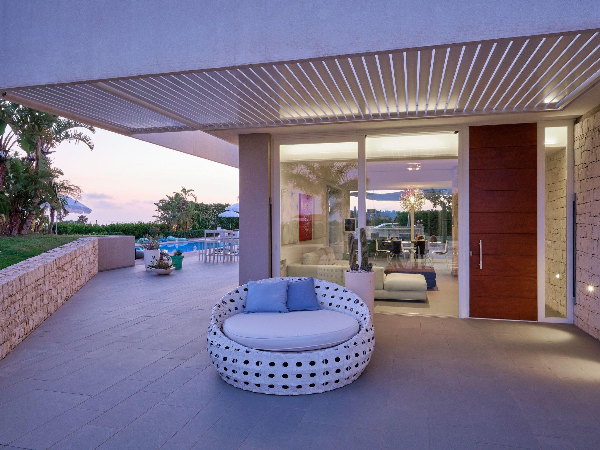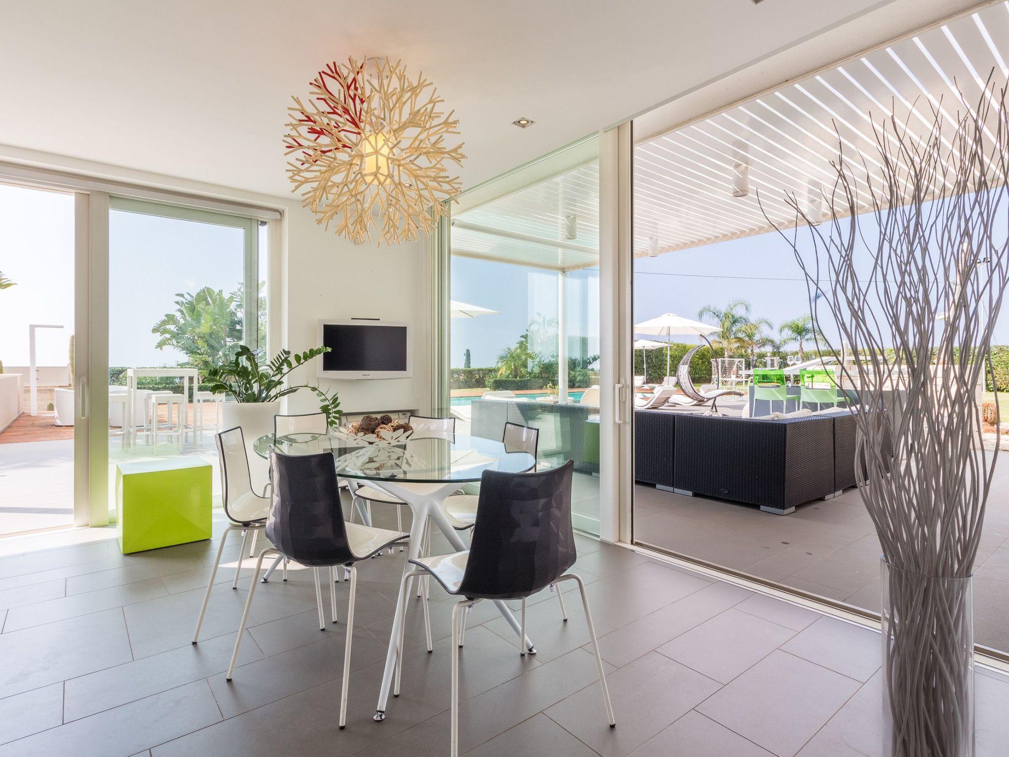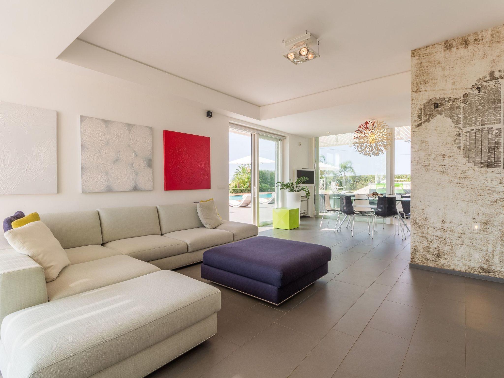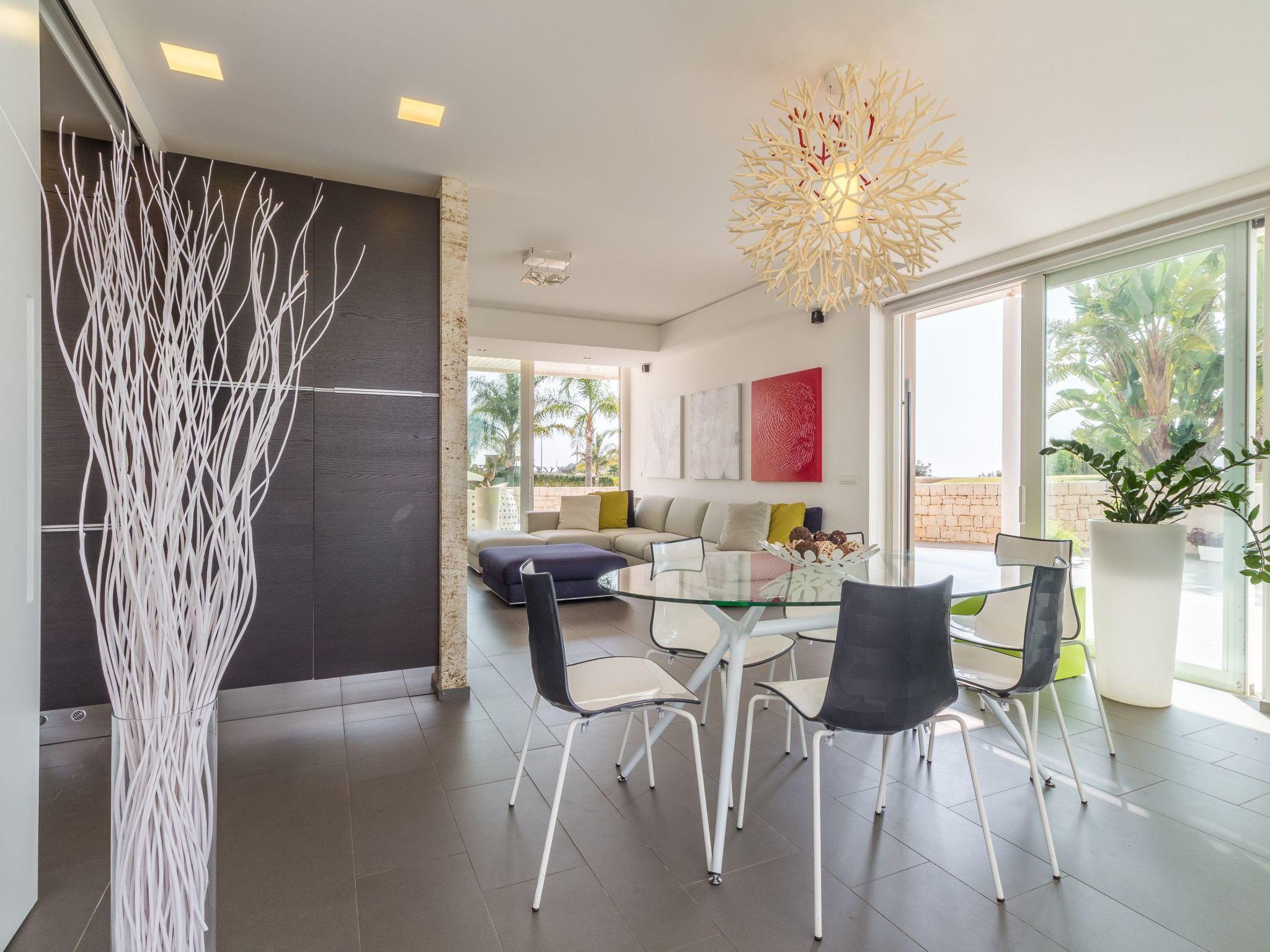 Der helle Innenbereich der Villa ist im modernen, minimalistischen Stil eingerichtet.