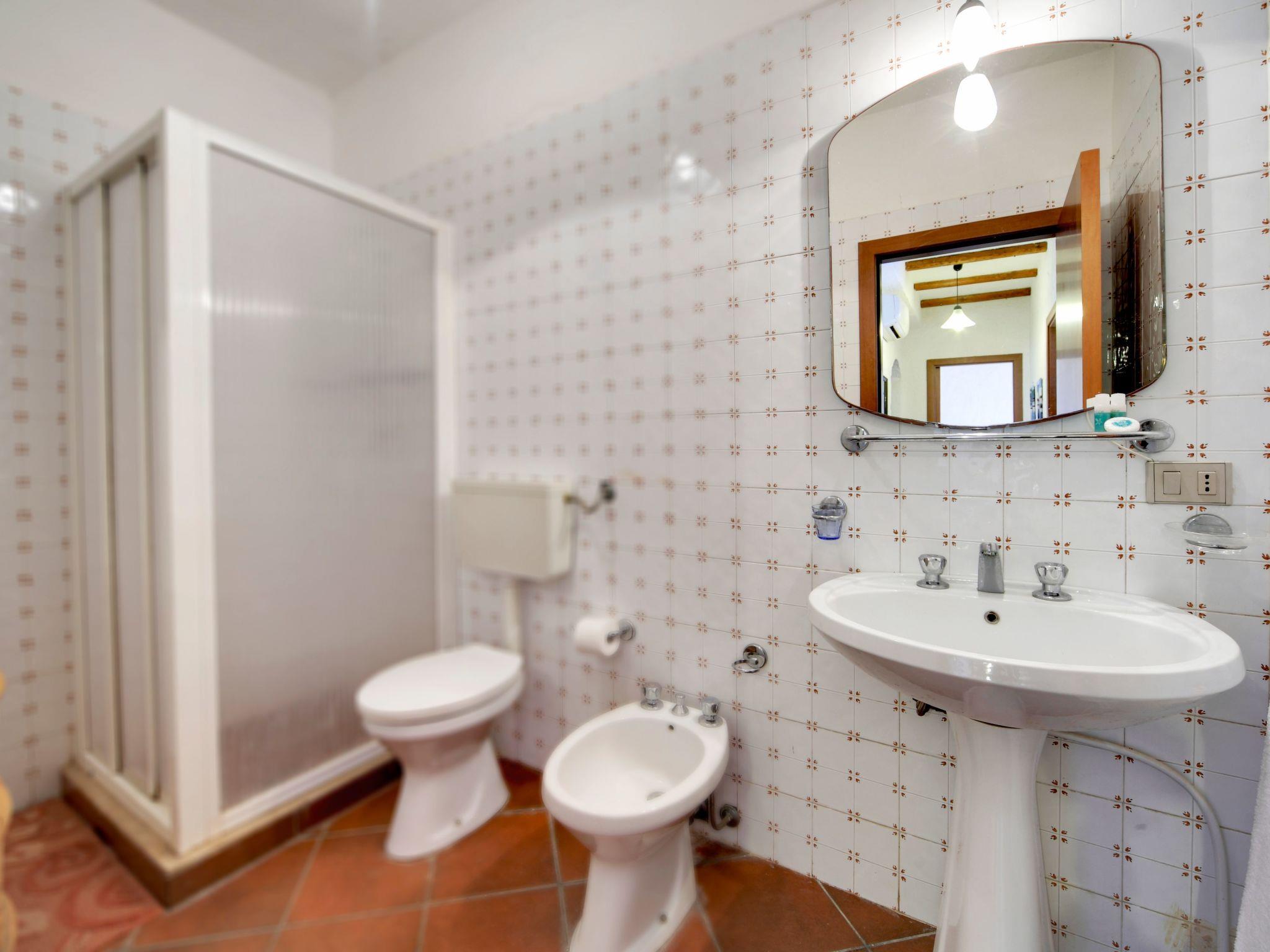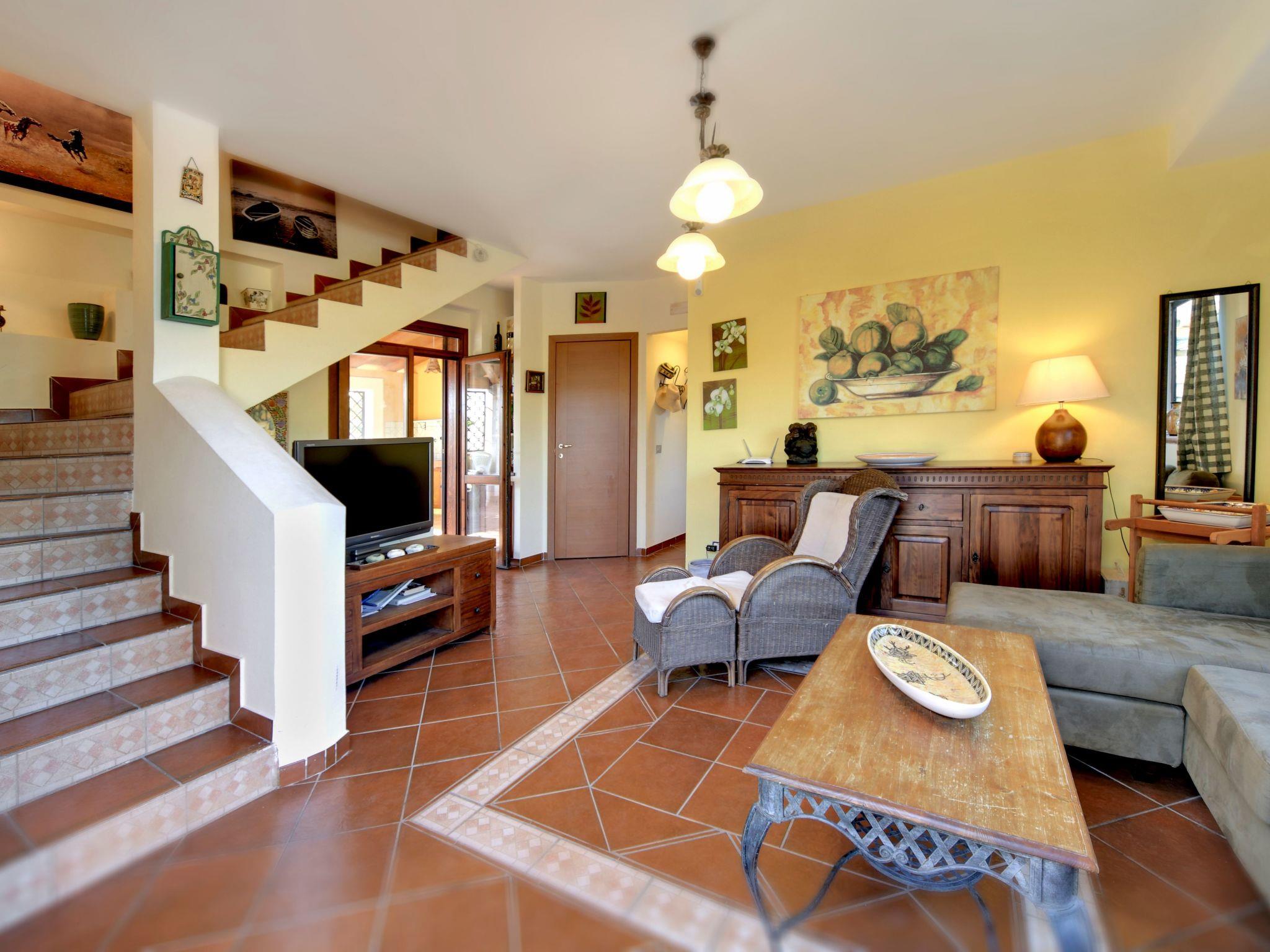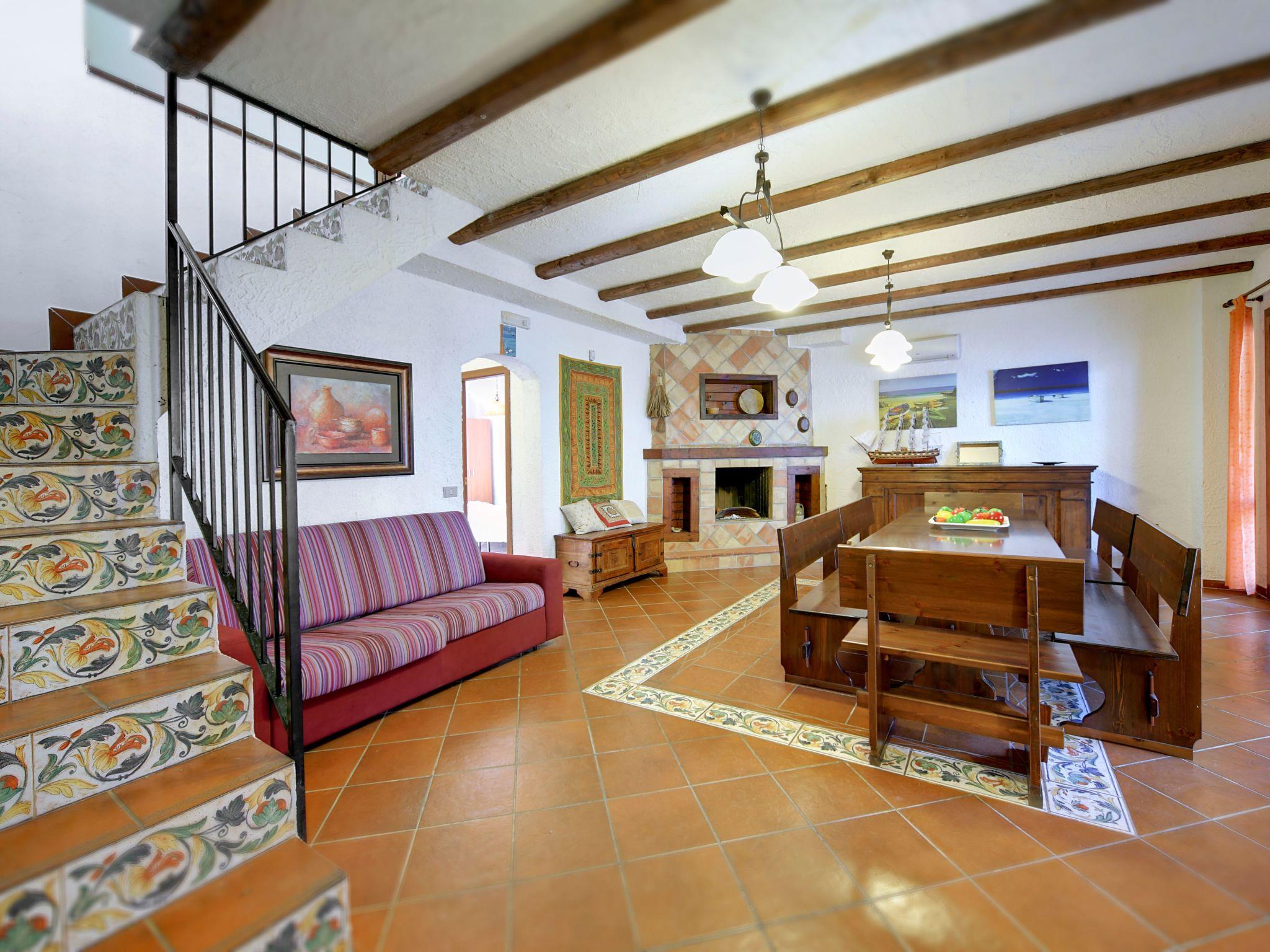 Das Haus erstreckt sich über drei Ebenen, die untere mit angrenzender Veranda, bestehend aus einem großen Esszimmer mit gemauertem Kamin und einem großen hölzernen Esstisch, komplett mit einem Doppelschlafsofa; von diesem Raum aus hat man Zugang zu einer voll ausgestatteten Küche mit Elektroherd und Backofen und einem Kühlschrank mit Gefrierfach. Der Schlafbereich besteht aus: drei Doppelzimmern mit Kommode und Kleiderschrank, einer Waschküche mit Bad und Dusche. Das Erdgeschoss, von dem aus Sie Zugang zum Haus haben, besteht aus einem gemütlichen Wohnzimmer mit einem Sofa mit Halbinsel, einem Couchtisch aus Holz und Schmiedeeisen, einem niedrigen Tisch für den Fernseher und einem Tischabräumer mit mehreren Fächern zu Ihrer Verfügung. Das Wohnzimmer führt zu einer komfortabel ausgestatteten Küche und einem Badezimmer. Im ersten Stock gibt es ein Schlafzimmer mit Doppelbett, Kommode und zwei Nachttischen, ein angrenzendes Bad mit Dusche und eine kleine private Veranda mit Blick auf den Pool.