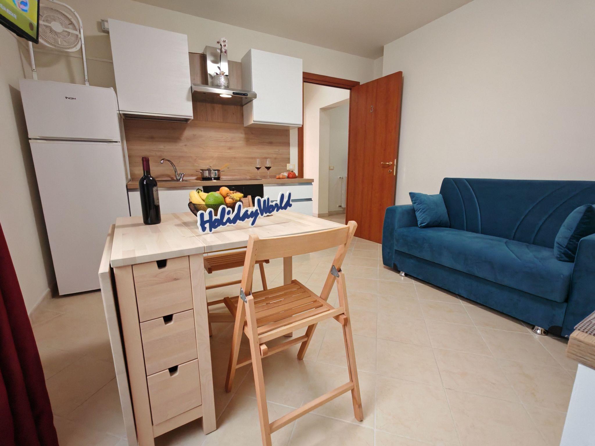Im Inneren wird man von einem komfortablen Flur begrüßt, der die verschiedenen Räume des Hauses verteilt. Auf der rechten Seite befindet sich das erste Doppelzimmer, geräumig und hell, mit einem eigenen Bad. Dieses Zimmer hat einen schönen kleinen Balkon zur Straße hin, der natürliches Licht und einen schönen Blick auf die Straße bietet. Im weiteren Verlauf des Flurs befindet sich ein zweites, ebenfalls großzügiges Doppelschlafzimmer. Von hier aus gelangt man in das Hauptbadezimmer der Wohnung, das mit allen Annehmlichkeiten und einer modernen Dusche mit Hydromassage ausgestattet ist. Auf der linken Seite des Flurs befindet sich der Wohnbereich, der aus einer Essecke mit einer ausgestatteten Küche, einem Esstisch und einem bequemen Sofa besteht. Die Küche ist modern und funktionell und mit einem praktischen Induktionskochfeld ausgestattet, ideal für effizientes und sicheres Kochen. Die gesamte Wohnung wurde kürzlich renoviert und befindet sich in einem ausgezeichneten Zustand. Die Zimmer sind geschmackvoll in einem modernen Stil eingerichtet und bieten eine gemütliche und zeitgemäße Atmosphäre.