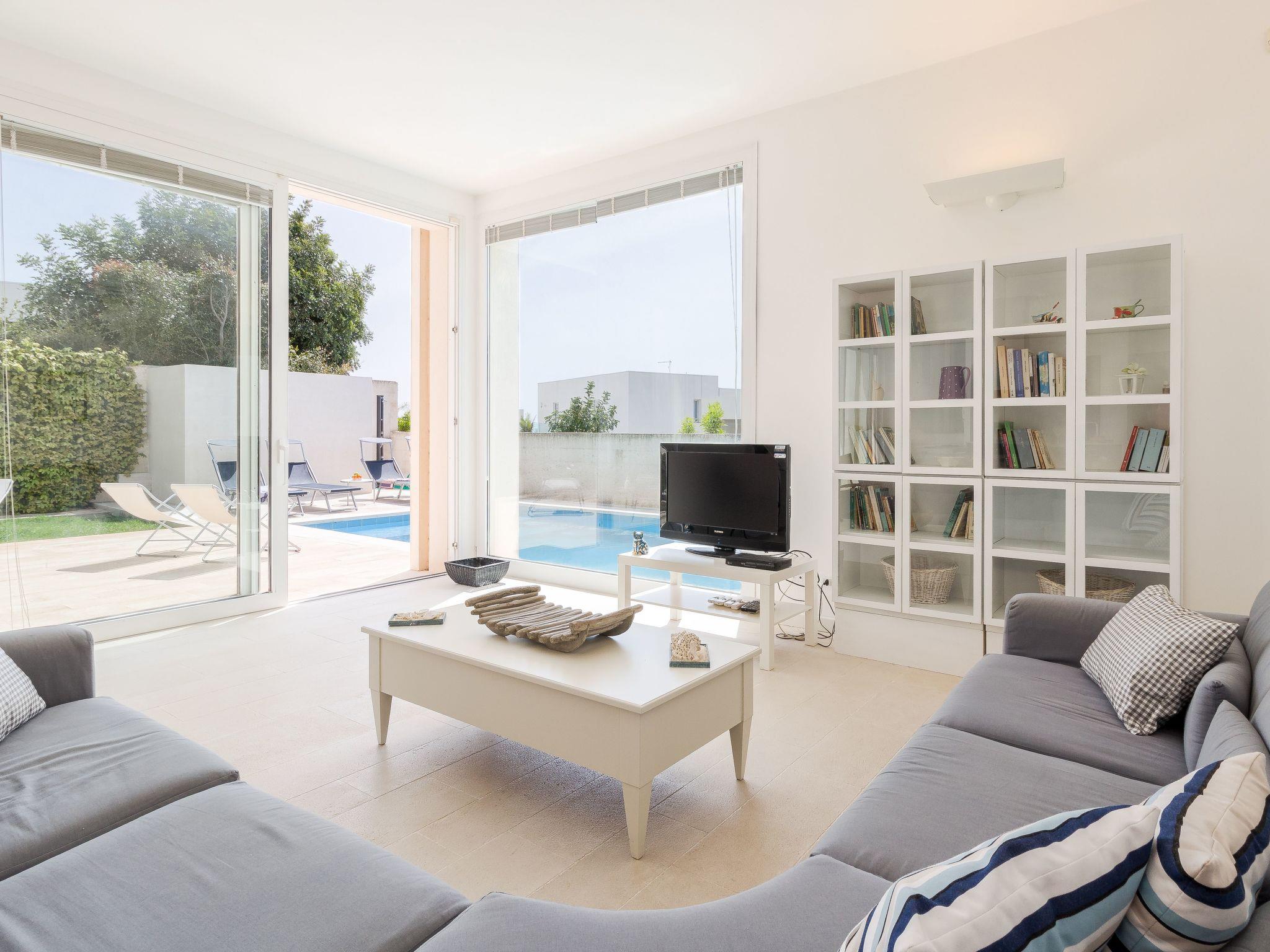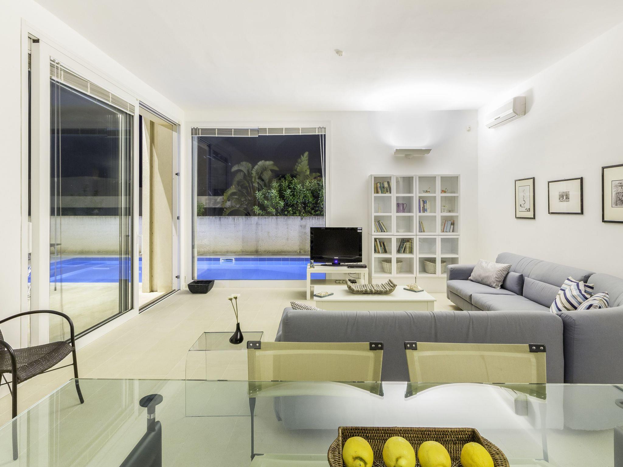 Der Innenbereich der Villa ist im modernen, minimalistischen Stil eingerichtet und besteht aus einem Wohn-, sowie einem Schlafbereich mit drei Zimmern und zwei Bädern.