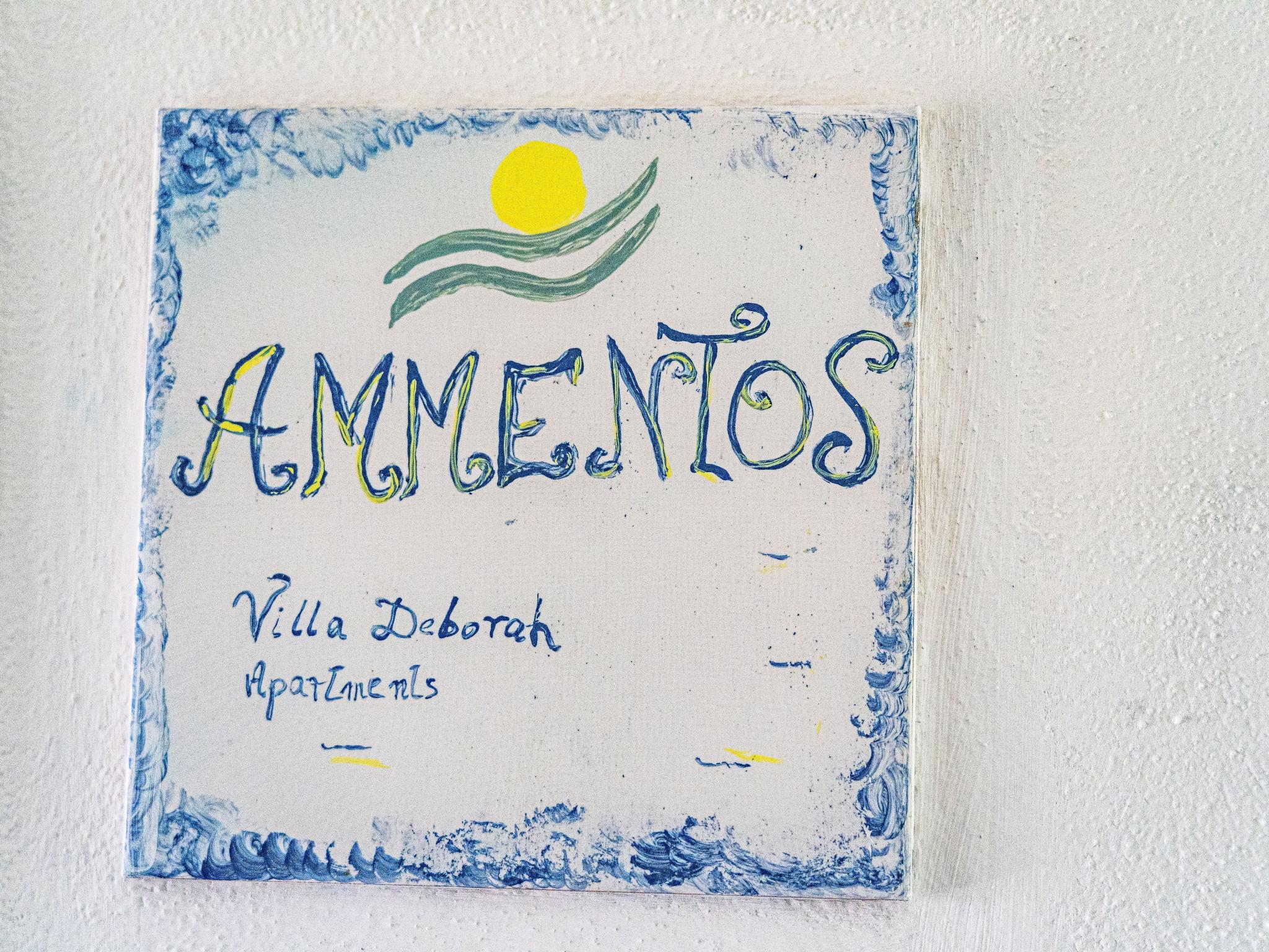"Ammentos", 2-Zimmer-Wohnung 57 m2, im Obergeschoss. Gemütlich eingerichtet: Wohn-/Esszimmer mit 1 Diwanbett (180 cm, Länge 80 cm), TV und Sat-TV (Flachbildschirm). Ausgang zur Terrasse. 1 Doppelzimmer. Kochnische (Backofen, Geschirrspüler, 4 Induktionskochplatten, Toaster, Wasserkocher, elektrische Kaffeemaschine). Dusche/Bidet/WC. Klimaanlage, Warmluftheizung. Kleine Terrasse teilweise überdacht. Terrassenmöbel, Sitzplatz. Panoramasicht auf das Meer. Zur Verfügung: Bügeleisen, Fliegengitter, Haartrockner. Internet (WLAN, gratis). IT090069B4000E8533