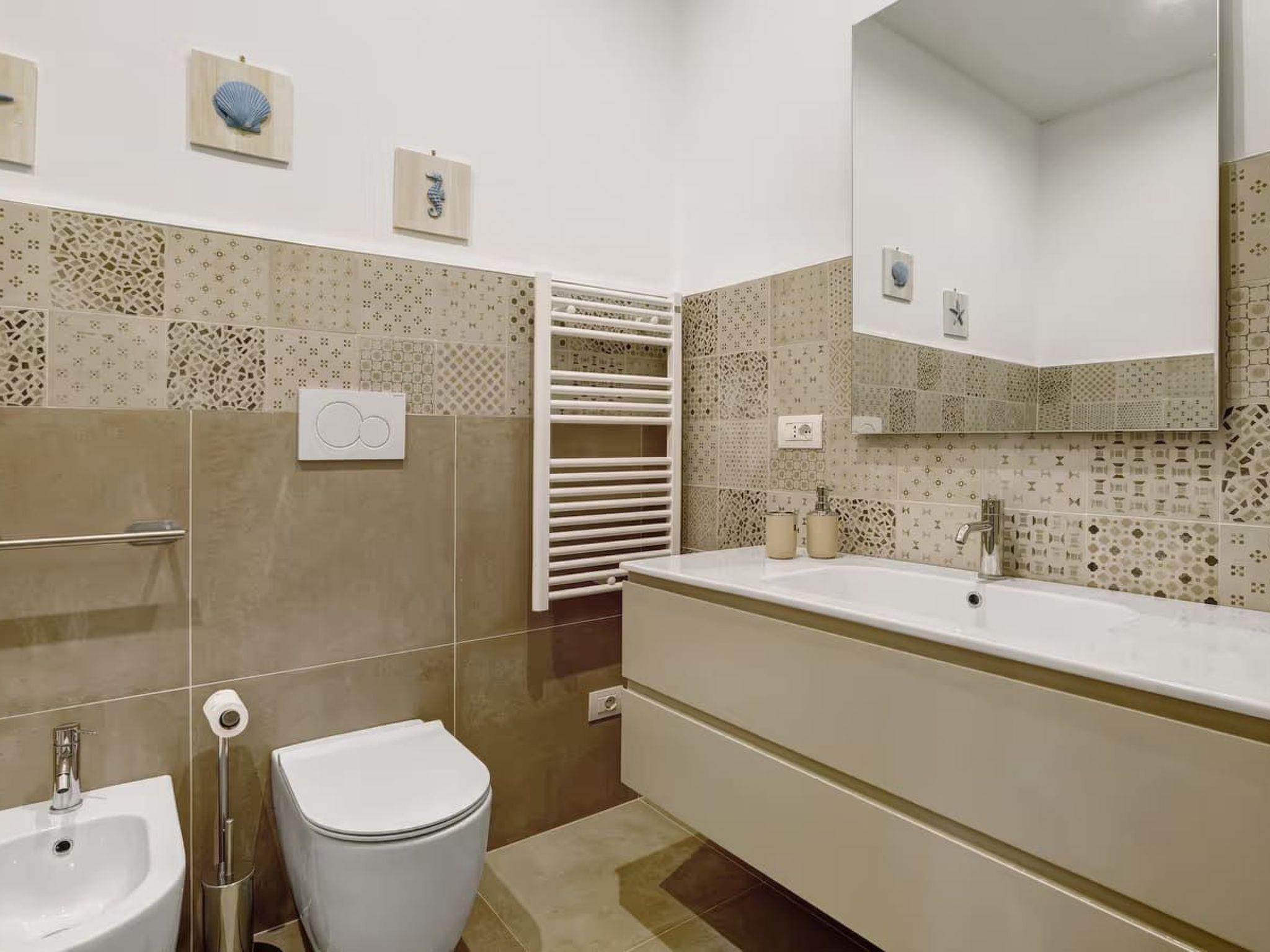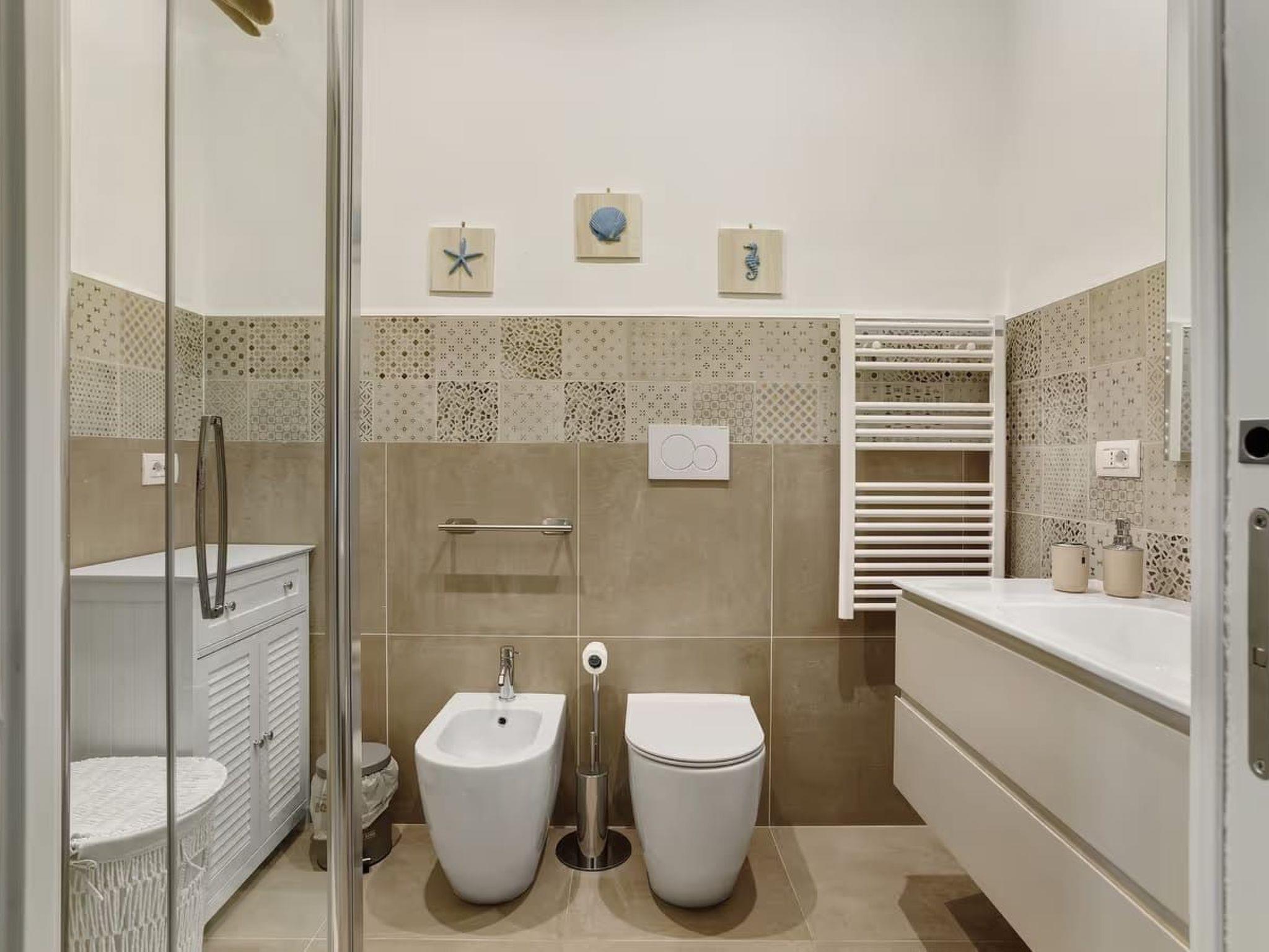 Im Inneren ist die Wohnung mit einer Reihe von Annehmlichkeiten für maximalen Komfort ausgestattet: Klimaanlage in allen Zimmern, um die Atmosphäre an heißen Sommertagen kühl zu halten, Smart-TV für entspannende Momente und eine gut ausgestattete Küche mit Induktionsherd, Kaffeemaschine (elektrisch und Kapsel), Geschirrspüler und Wasserkocher. Eine Waschmaschine zur alleinigen Nutzung garantiert auch bei längeren Aufenthalten Komfort.