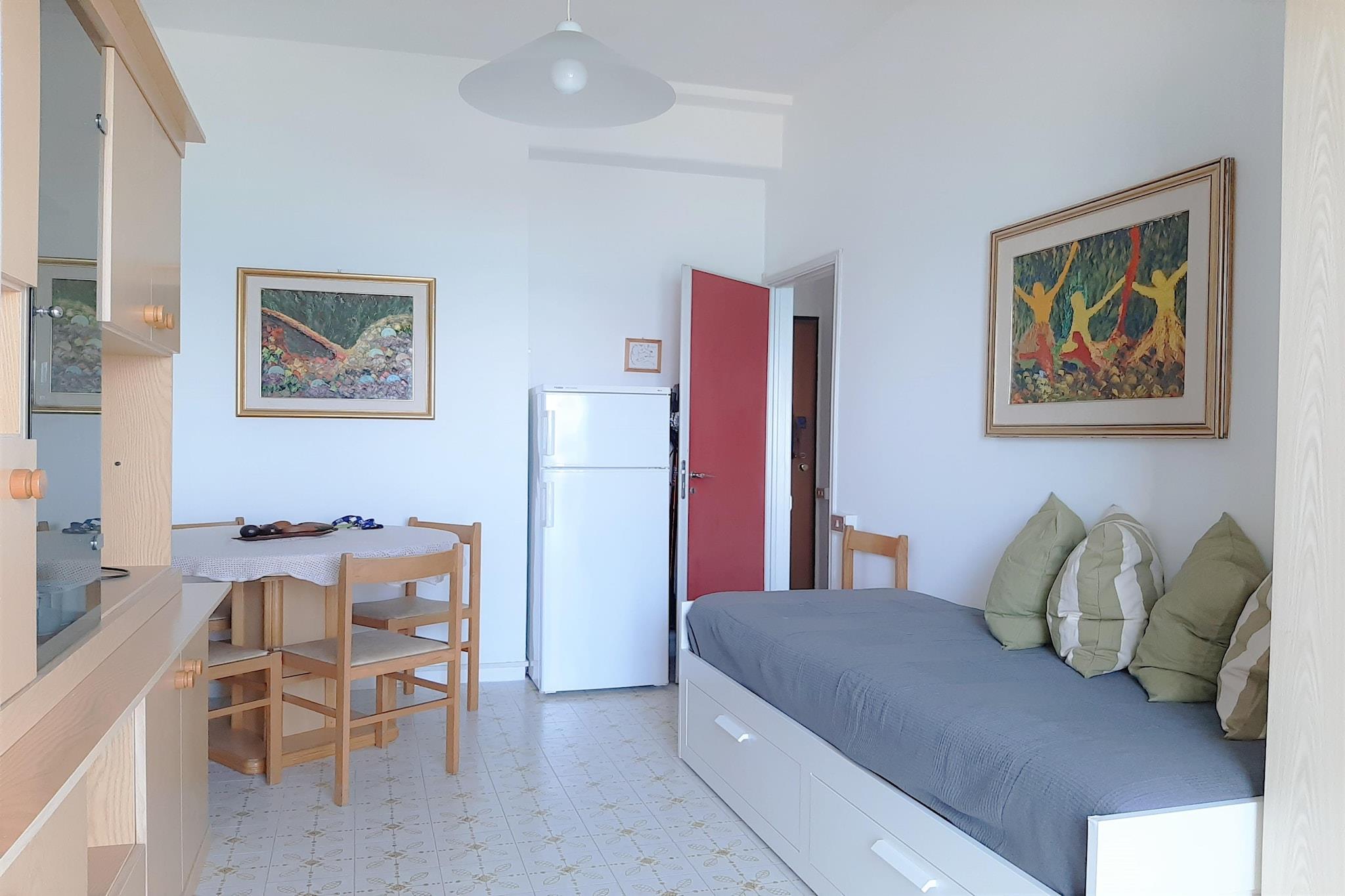 Dies ist ein gemütliches Apartment mit wunderschönem Meerblick, das Ihnen einen Urlaub voller Spaß und Entspannung bescheren wird. Das Apartment im 4. Stock mit Aufzug besteht aus einem hellen Wohnzimmer mit Meerblick, einem Badezimmer und einem geräumigen Schlafzimmer mit Doppelbett. Dieser Ort ist ideal für einen Familienurlaub. Das Apartment liegt an der Küste der Marken, 4 km von Marotta, 12 km von der charakteristischen Stadt Senigallia und 14 km von Fano entfernt. In den Nachbargebieten gibt es historische Dörfer und Städte, das Schloss Gradara (44 km), ein charakteristisches und historisches mittelalterliches Dorf, Festivals, Ausstellungen und Veranstaltungen fast das ganze Jahr über, und die Stadt Urbino (58 km), Heimat einer der ältesten Universitäten. In den Nachbargebieten befinden sich Italiens berühmteste Vergnügungs- und Themenparks. Sie haben Zugang zu einem Sonnenschirm, einer Sonnenliege und einem Stuhl. In der offenen Küche können Sie köstliche Mahlzeiten zubereiten und am Esstisch auf der Veranda genießen. Das Haus liegt in der Nähe einer Eisenbahn.