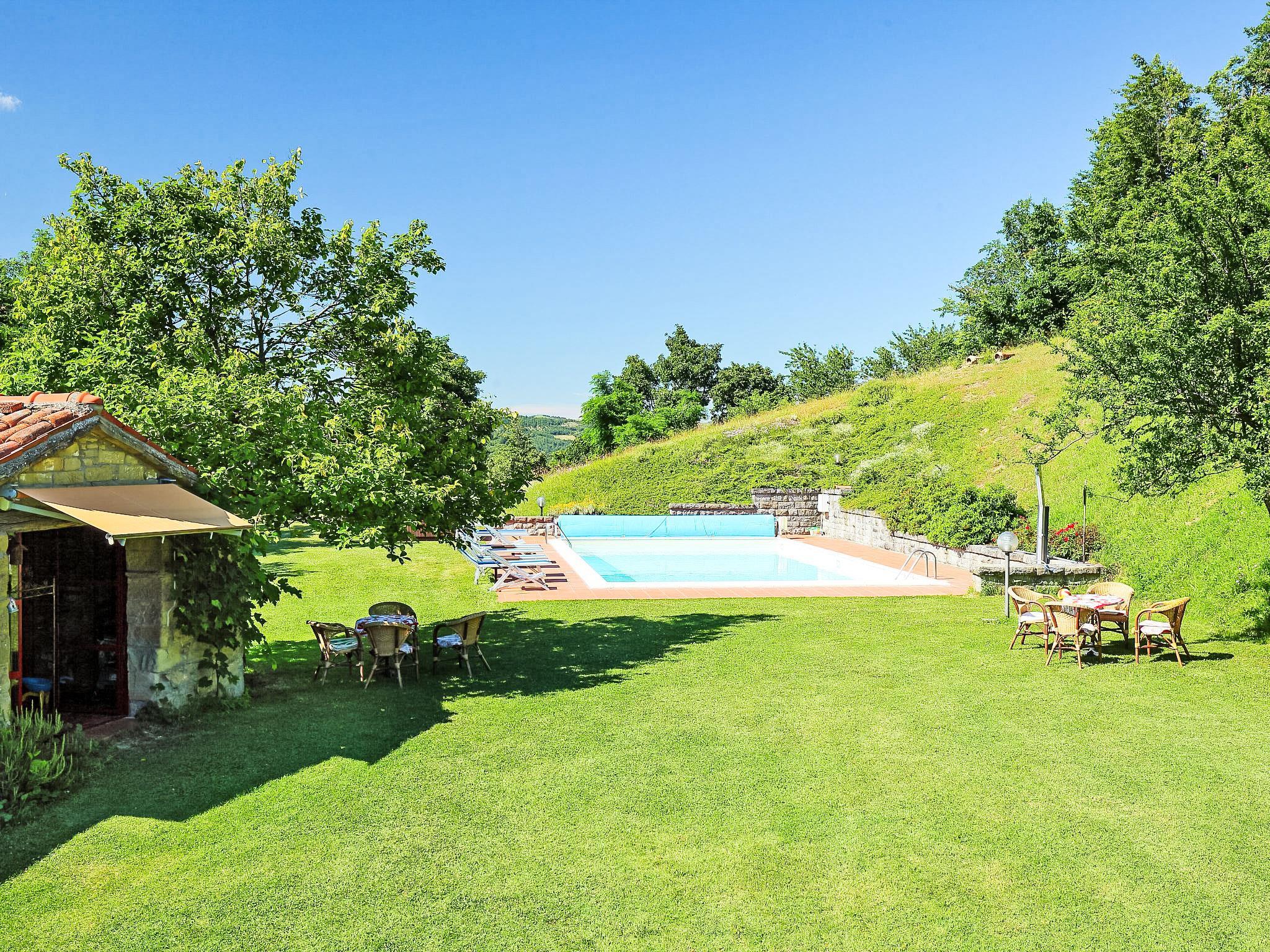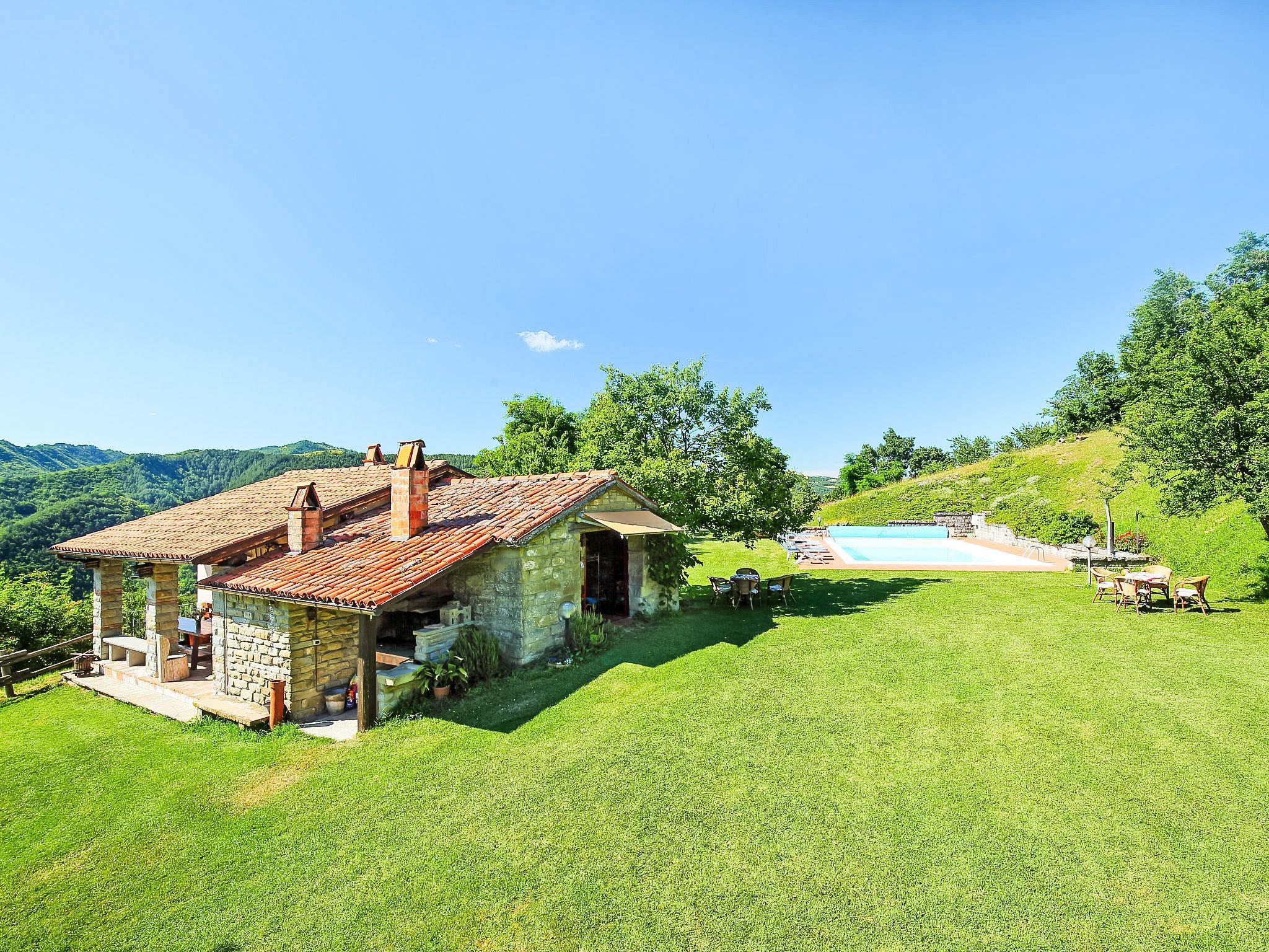 Bauernhof "Azienda Agricola Piano Rosso", 575 m.ü.M.. 3 Wohnungen im Ferienhaus. 3 km vom Zentrum von Marradi, 34 km vom Zentrum von Borgo San Lorenzo, 65 km vom Zentrum von Firenze, sonnige, erhöhte Lage auf einem Hügel, 45 km vom See. Zur Mitbenutzung: Schwimmbad (6 x 12 m, 120 - 160 cm tief, saisonale Verfügbarkeit: 01.Jun. - 21.Sep.). Sprudelbad, Tischtennis, Gartenmöbel, Grill, Kinderspielplatz (Rutschbahn, Schaukel). Im Hause: Waschmaschine (zur Mitbenutzung, extra). Frühstück möglich (extra). Zufahrt bis zum Haus (500 m Naturweg). Parkplatz. Einkaufsgeschäft 2.5 km, Lebensmittelgeschäft 3 km, Supermarkt 3 km, Bushaltestelle 2.5 km, Bahnstation 3 km. Golfplatz (18 Loch) 40 km, Tennis 3 km, Reitstall 6 km. Nahe gelegene Sehenswürdigkeiten: Scarperia 37 km, Vicchio 40 km, Firenzuola 44 km. Es ist möglich einen Kochkurs zu buchen. Bitte beachten: Der Besitzer wohnt im selben Haus. Badekappenpflicht.
