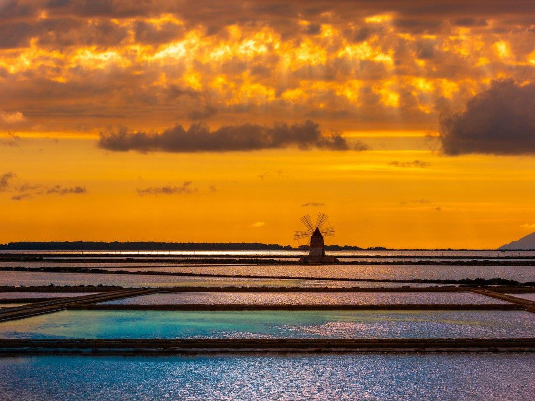 Das Naturschutzgebiet Stagnone mit seinen Salinen ist ein magischer Ort, um atemberaubende Sonnenuntergänge zu bewundern und Wassersportarten wie Kitesurfen und Windsurfen auszuüben.