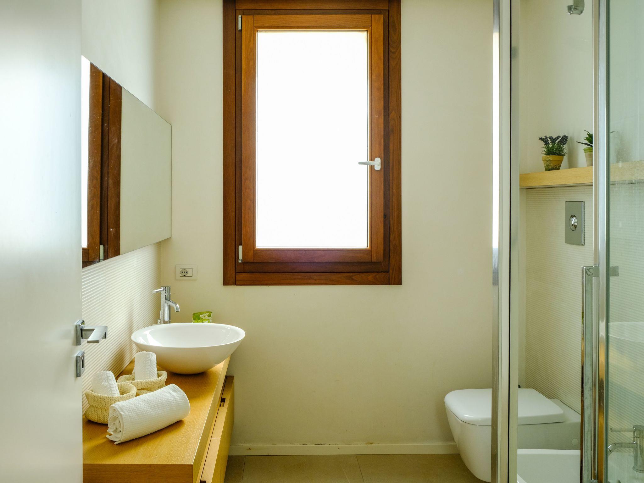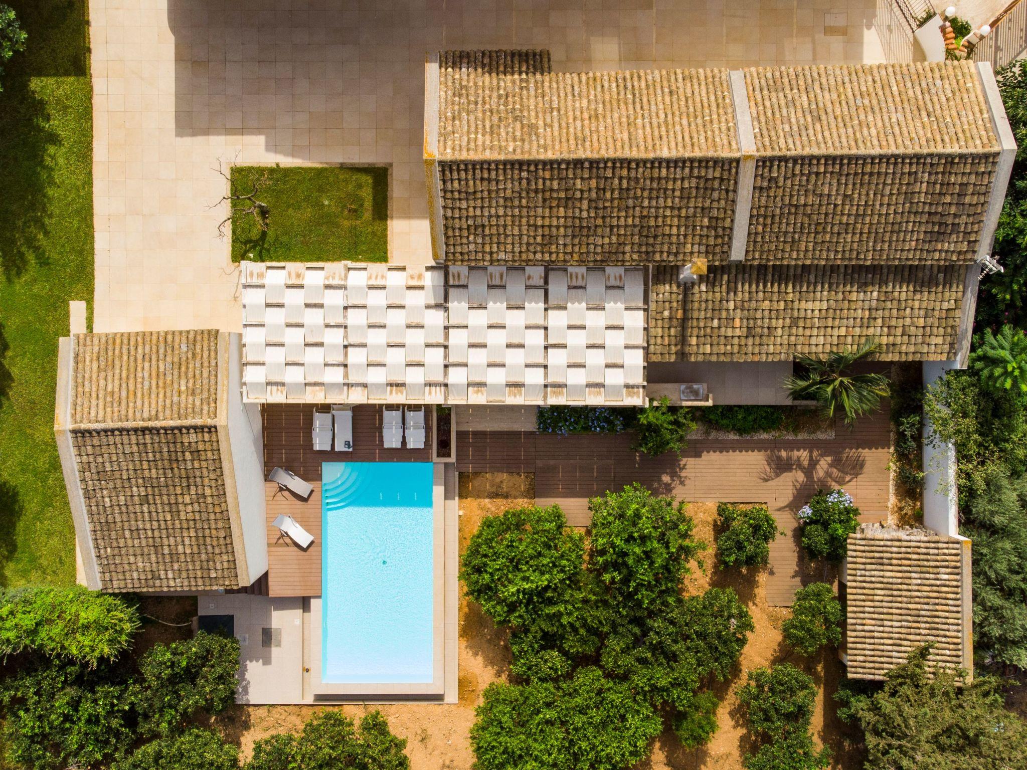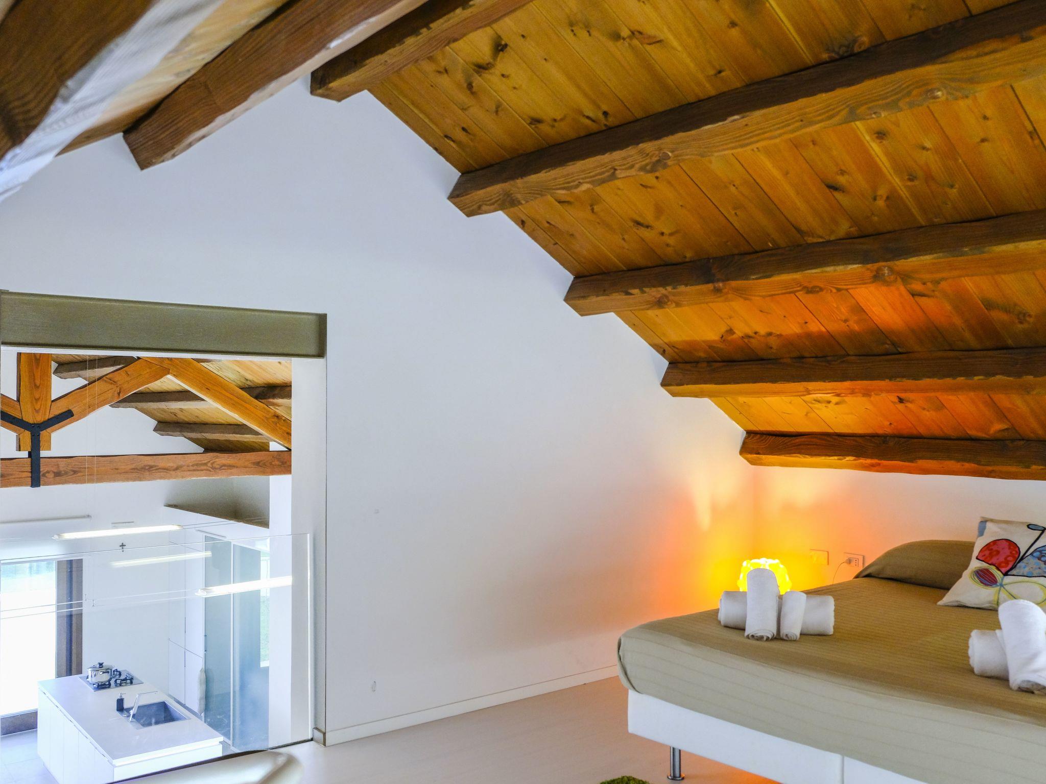 Die Villa befindet sich auf einer Ebene und besteht aus zwei Gebäuden. Im Hauptgebäude befindet sich der Schlafbereich, während sich der Wohnbereich im Dachgeschoss befindet, das die Eigentümer sorgfältig umgestaltet haben, wobei sie den ursprünglichen Charakter der vorbestehenden Architektur respektiert haben. Sie haben sich für eine Kombination aus rohen und natürlichen Materialien entschieden, wie z.B. Steinböden, während die Decke in Kastanienholz gehalten wurde, so dass eine Kontinuität zwischen Innen- und Außenbereich zu erkennen ist. Der Schlafbereich besteht aus zwei Doppelschlafzimmern, einem Zweibettzimmer und einem Einzelzimmer. Die Möbel sind ordentlich und essentiell und schaffen eine warme und komfortable Umgebung.