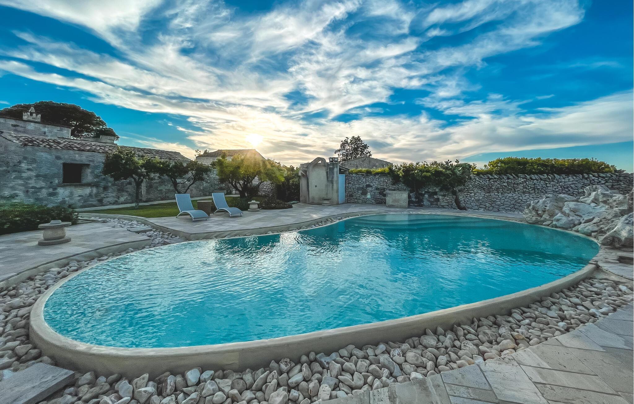 Rund um das Haus birgt das große Naturgrundstück einen liebevoll gestalteten Außenbereich, in dem Sie Privatsphäre genießen und lange Tage unter dem blauen Himmel verbringen können. Hier lockt ein wunderschöner Pool mit erfrischenden Badeerlebnissen, und zahlreiche Orte – mal im Schatten, mal in der Sonne – laden zum Speisen und Entspannen ein.