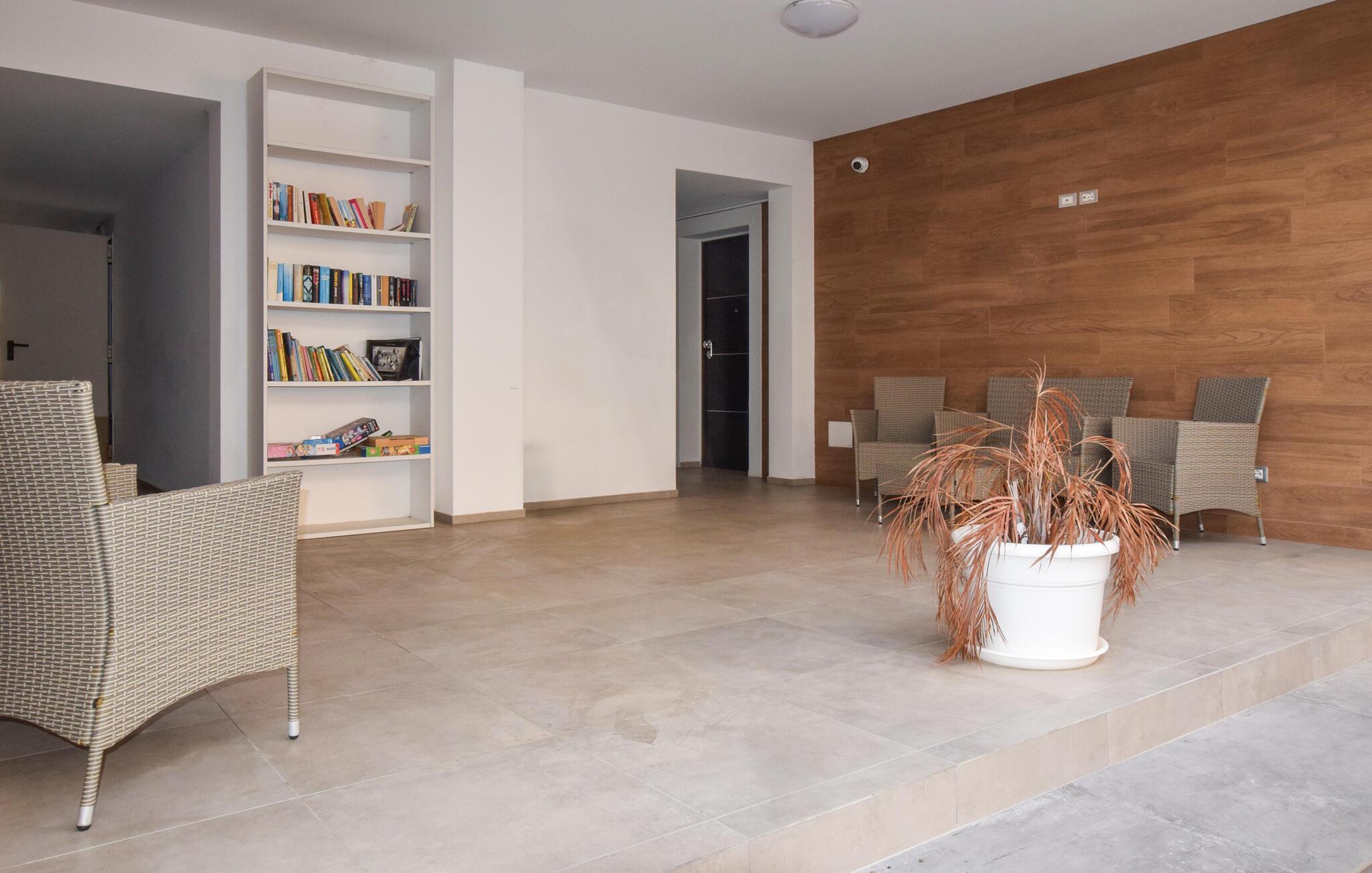 Diese stilvolle Unterkunft bietet alles, was Sie für einen erholsamen Aufenthalt benötigen. Genießen Sie das Ambiente der hellen Wohnung und der modernen Küche, ideal für Selbstversorger. Entspannen Sie sich auf der überdachten Terrasse und plaudern am Abend, mit einem Glas Wein in der Hand, im Freien.