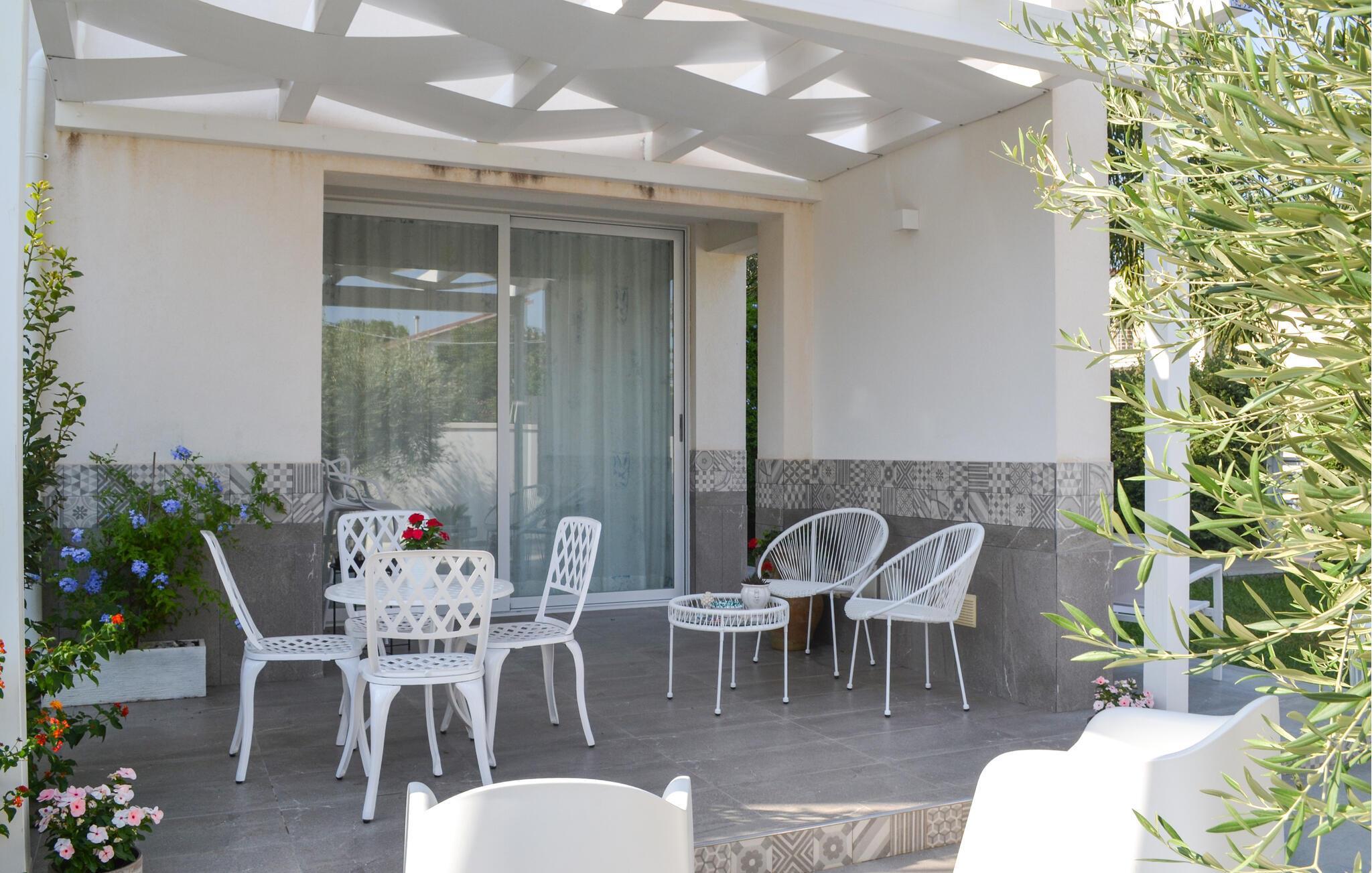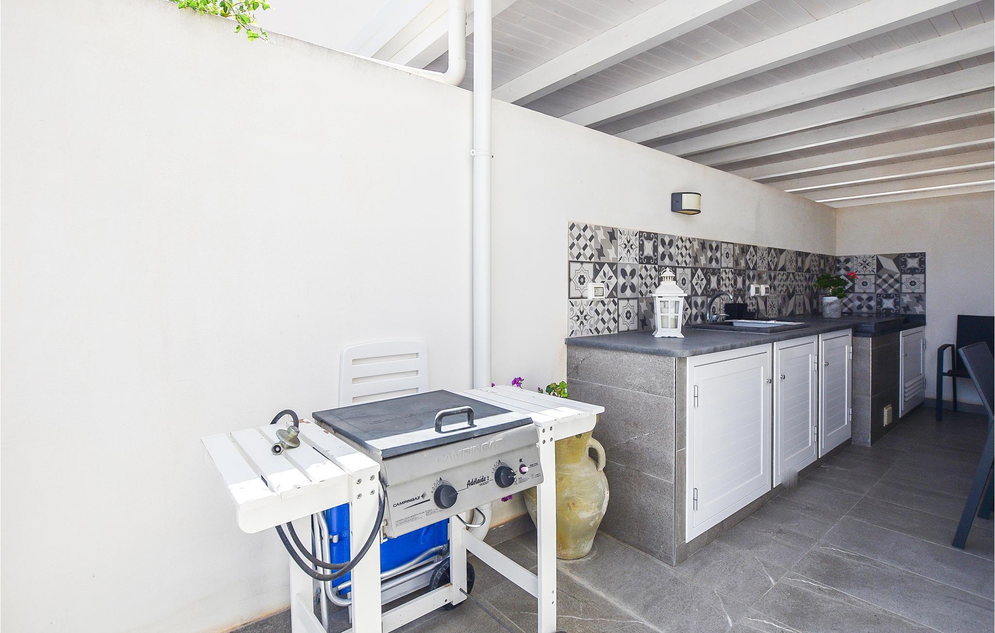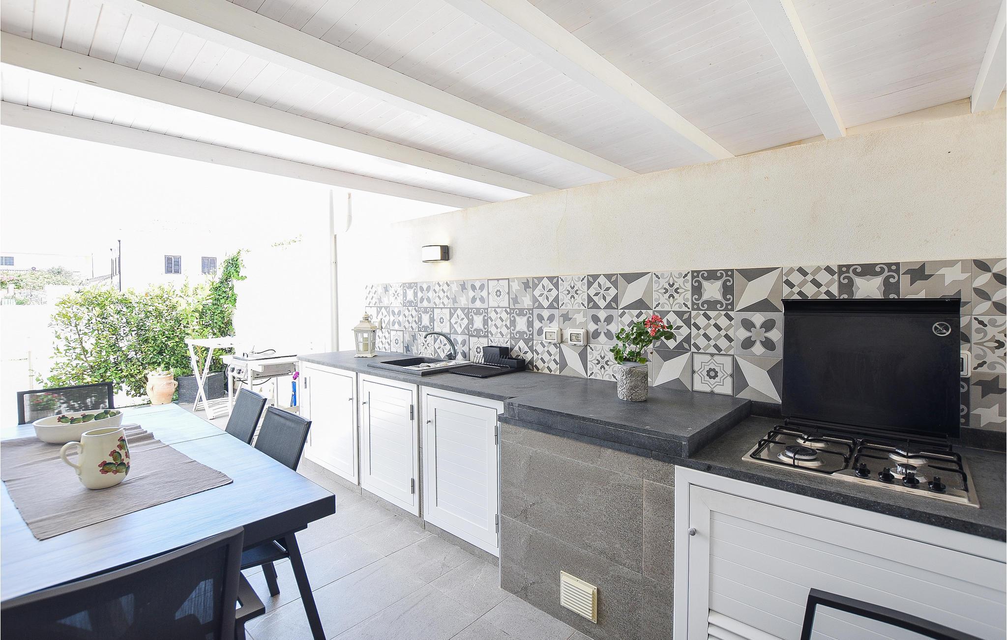 Nehmen Sie Ihre Mahlzeiten im Freien ein, dank der Außenküche, die Sie auch im Freien zubereiten können. Der gepflegte Garten mit Blumen und Palmen und die schattigen Veranden sind ideale Orte zum Entspannen.