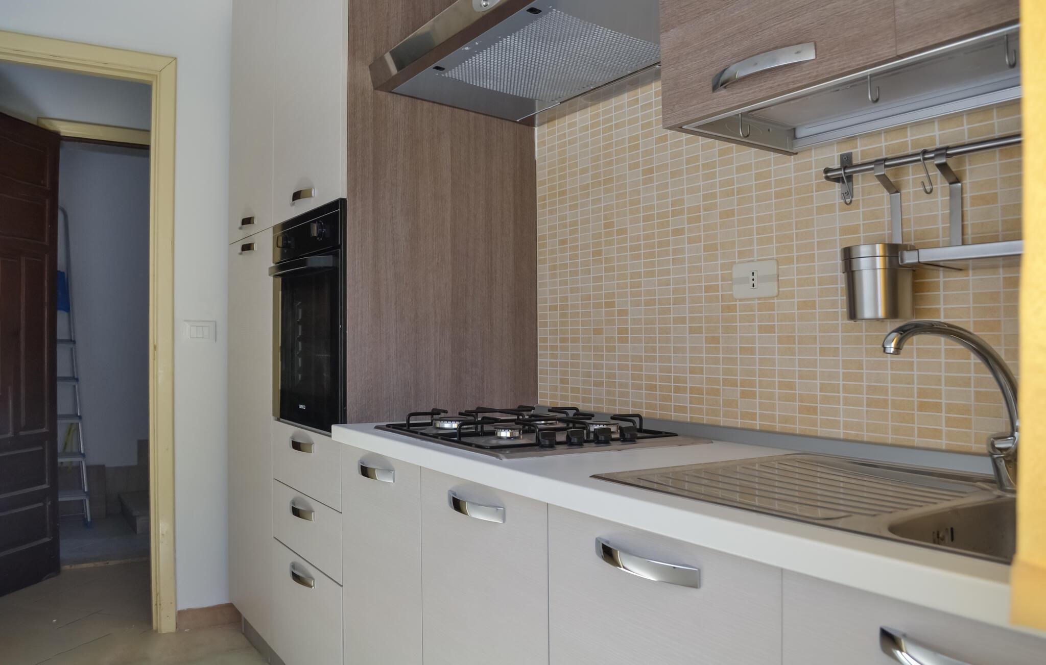 Die Küchenzeile verfügt über heißes Wasser