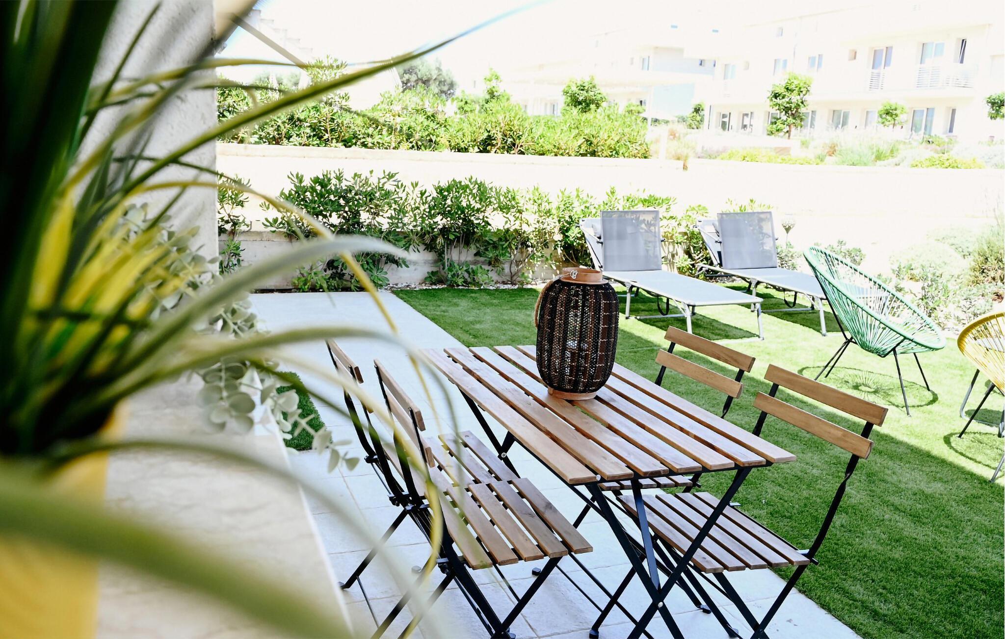 Der Pool, den Sie sich mit anderen teilen, bietet zu jeder Tageszeit eine wohltuende Erfrischung, entweder schon morgens in aller Ruhe oder nach einem erlebnisreichen Tag. Danach laden Sonnenliegen dazu ein, mit einem kühlen Getränk einfach mal nichts zu tun. Wer es sportlich mag, kann gemeinsam mit anderen im Fitnessraum trainieren oder gemeinschaftlich Beachvolleyball und Padeltenis spielen.