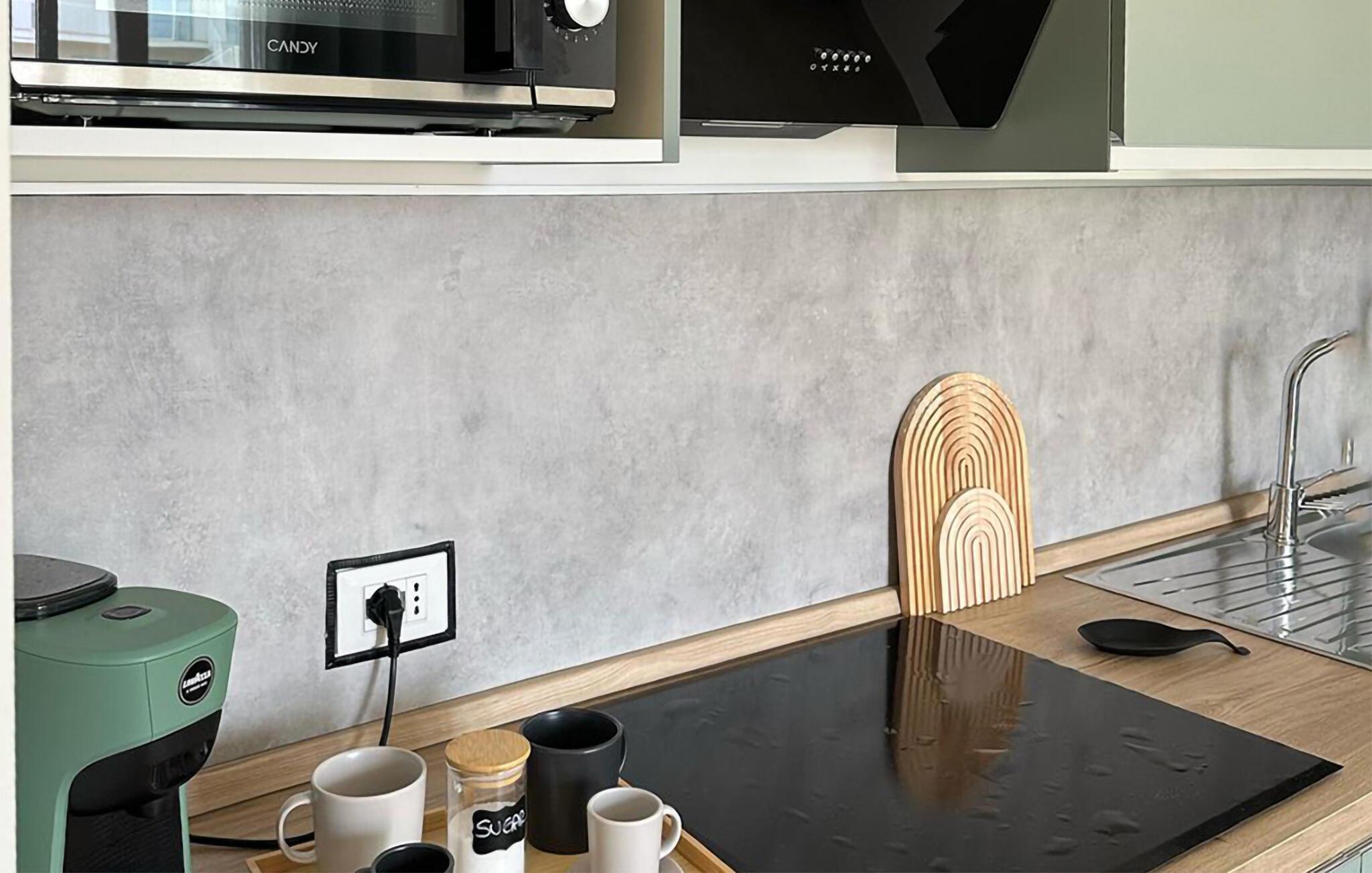 Diese Wohnung ist klar und gemütlich gestaltet – von der modernen Küche bis zum bequemen Sofa und den liebevoll ausgesuchten Details. Ob beim Kochen mit Familie oder Freunden, beim gemeinsamen Essen mit einem Glas Wein oder beim Ausklang des Tages auf dem Sofa: Hier finden Sie schnell Ruhe und Erholung.