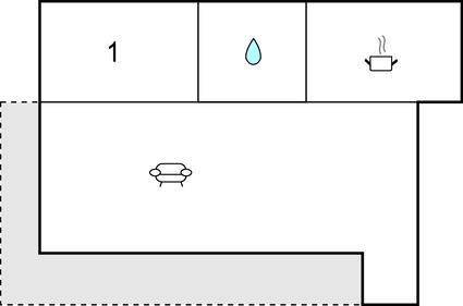 Badezimmer 7m2 (nr. 1) - WC. Warmes und kaltes Wasser. Dusche