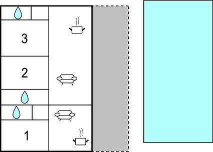 Badezimmer 6m2 (nr. 3) - WC. Warmes und kaltes Wasser. Dusche