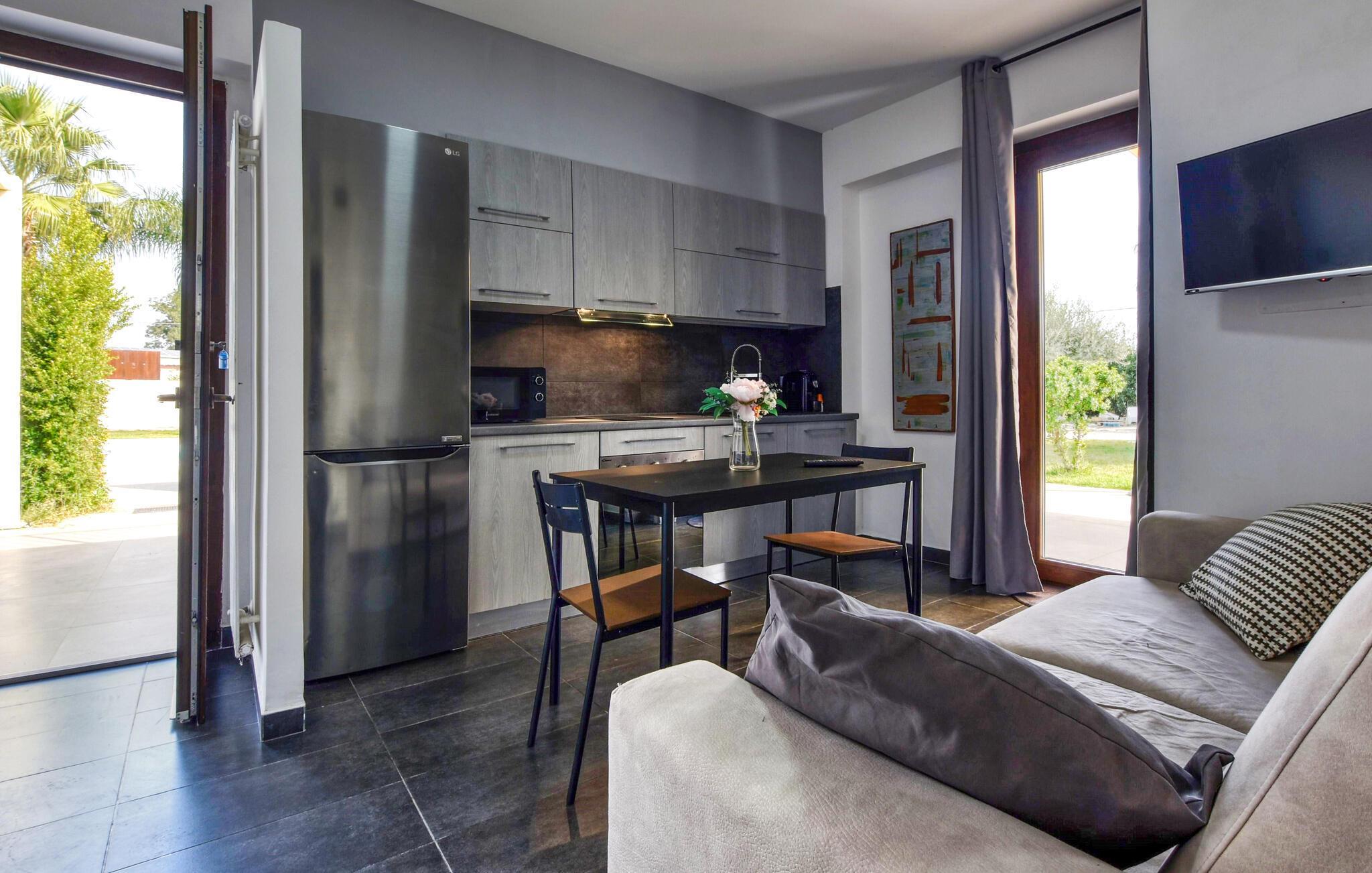 Ihr Ferienhaus in Mascali bietet alles, was Sie für eine unvergessliche Auszeit auf Sizilien benötigen. eine ideale Lage, viele schöne Annehmlichkeiten und eine behagliche Einrichtung. Beginnen Sie den Tag entspannt mit einem Frühstück in der großzügigen Wohnküche. Am Esstisch genießen Sie Ihre Mahlzeit in einer entspannten Atmosphäre und lassen die Ruhe des Hauses auf sich wirken. Das gemütliche Sofa lädt dazu ein, Momente der Entspannung zu genießen. Lassen Sie den Abend bei einem guten Buch und einem Glas Nero d’Avola stimmungsvoll ausklingen.