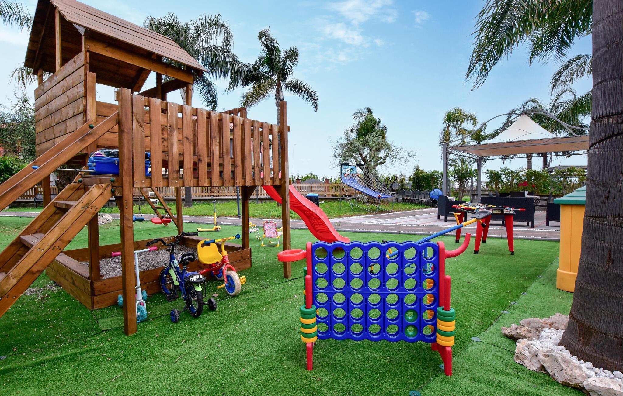 Der weitläufige, eingezäunte Garten lockt mit zahlreichen reizvollen Spielmöglichkeiten für Ihre Kinder. Während Sie ein herrliches Frühstück unter der Pergola servieren, den Grill vorbereiten oder bei einem Glas Wein über vergangene Zeiten plaudern, vergnügen sich die jüngeren Gäste im Spielhaus, am Basketballkorb oder auf der Wippe.