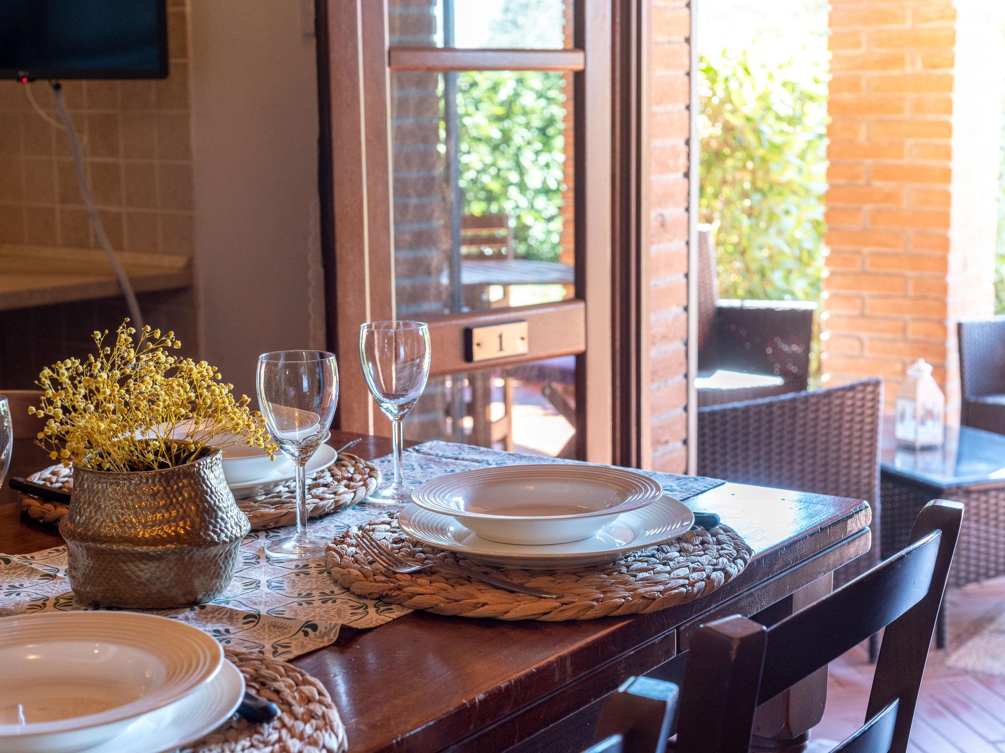 "Lavanda", 2-Zimmer-Reihenhaus 35 m2, im Erdgeschoss. Komfortabel und gemütlich eingerichtet: Wohn-/Esszimmer mit Esstisch, TV und Klimaanlage. Ausgang zum Garten, zur Terrasse. 1 Zimmer mit 1 Doppelbett, 1 Schlafmöglichkeit, Dusche/Bidet/WC und Klimaanlage. Offene Küche (Backofen, Geschirrspüler, 4 Flammen, Toaster, Wasserkocher, elektrische Kaffeemaschine). Ausgang zum Garten, zur Terrasse. Warmluftheizung. Terrasse überdacht. Terrassenmöbel. Zur Verfügung: Waschmaschine. Internet (WLAN, gratis). Parkplatz. Bitte beachten: Nichtraucher-Haus. Maximal 1 Haustier/Hund erlaubt. Eigener Eingang. Smart-TV. IT053015C2ZQWYGT4Y