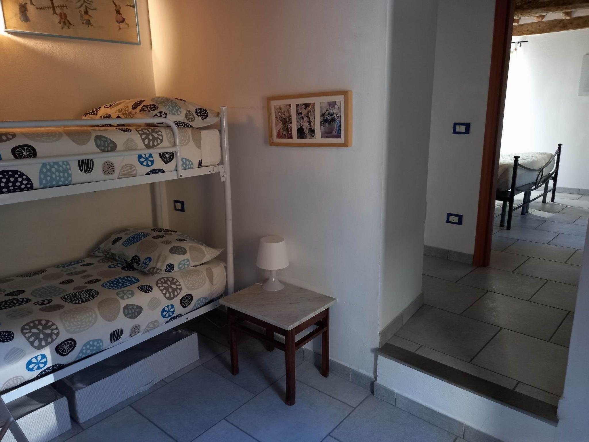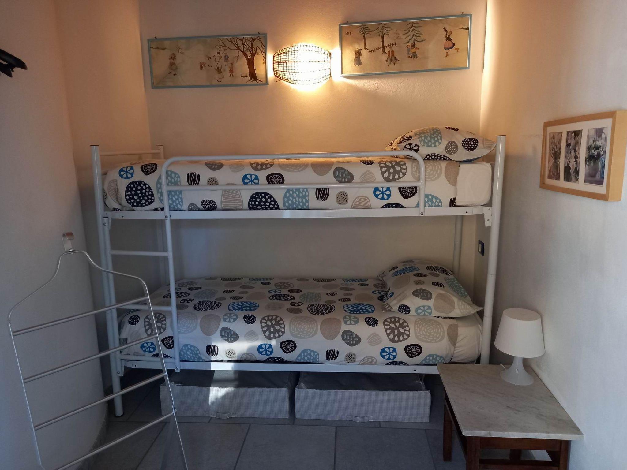 Im Obergeschoss gibt es ein Schlafzimmer mit Doppelbett, ein Schlafzimmer mit Etagenbett (Durchgang vom Schlafzimmer mit Doppelbett zum Bad), Bad mit Dusche. Haustiere erlaubt. Kleiner Innenhof.