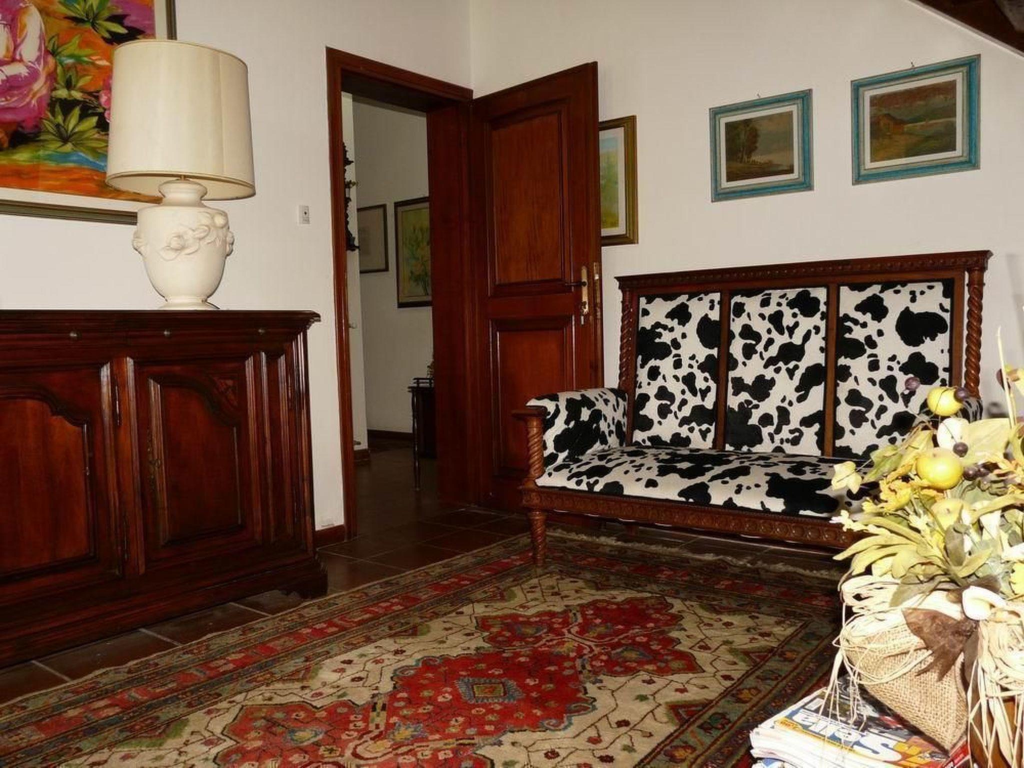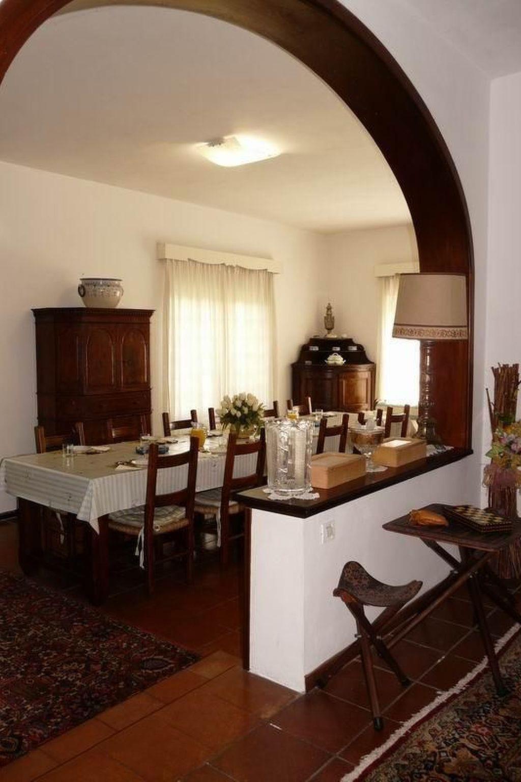 Geräumiges und helles Wohnzimmer mit Satelliten-TV, ein großes Esszimmer, eine kleine und eine große Küche (Backofen, 3 Kühlschränke mit Gefrierfach, Geschirrspüler, Toaster, Wasserkocher, Kaffeemaschine, Mikrowelle), Waschküche und eine große überdachte Terrasse, ideal für Mahlzeiten im Freien, mit Zugang zum Garten. Ein Badezimmer mit Dusche. Eine schöne geschnitzte Holztreppe führt in den ersten Stock, mit Balkon und Blick auf die Berge.