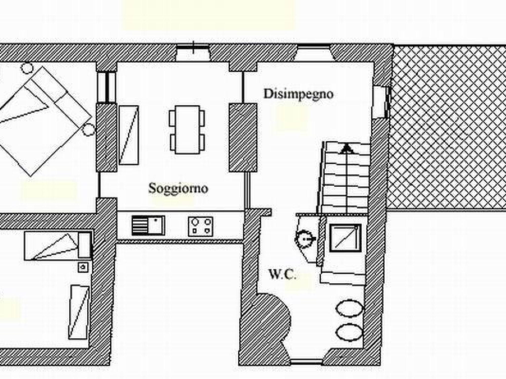 Zwei miteinander verbundene Doppelzimmer (ein Bett 160x190 cm und das andere 140x190 cm), kleines Wohnzimmer mit Einzelbett, Essküche (Backofen, Kühlschrank mit Gefrierfach, Geschirrspüler, amerikanische Kaffeemaschine), Bad mit Dusche.