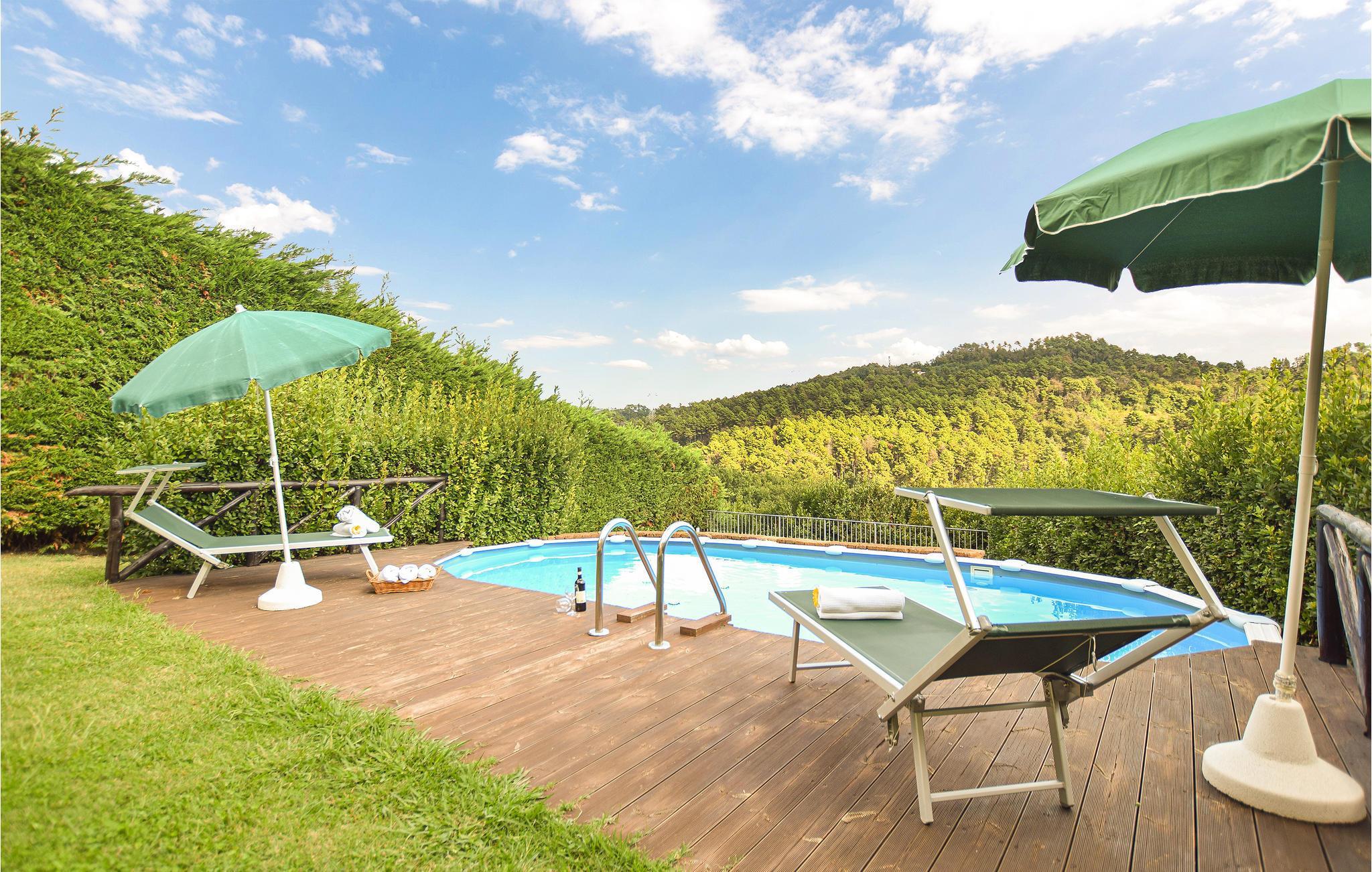 Dieser moderne Teil eines Zweifamilienhauses befindet sich in den Hügeln von Massarosa und bietet einen herrlichen Blick auf das Meer der Versilia und den Massaciuccoli-See. Auf der Panoramaterrasse können Sie im Freien frühstücken oder zu Mittag essen. Ein großer gepflegter Garten mit Grill, Tisch und Stühlen lädt zum Abendessen ein. Der Swimmingpool mit Sonnenliegen lädt zum Entspannen, Lesen eines Buches oder einfach zum Bewundern der umliegenden Landschaft ein. Im Obergeschoss ist das Schlafzimmer mit drei Betten ein Dachgeschoss mit einer Mindesthöhe von 0,92 cm und einer Maximalhöhe von 2,15 cm. Genießen Sie hier Ihren Urlaub abseits des Stadtverkehrs! Von hier aus können Sie interessante Ziele erreichen: Lucca (21 km) mit seiner intakten Stadtmauer aus dem 16. Jahrhundert und den zahlreichen mittelalterlichen Kirchen (Lucca ist als „die Stadt der 100 Kirchen“ bekannt); Camaiore (14 km) mit seinem charakteristischen historischen Zentrum mit künstlerischen Juwelen wie der berühmten Stiftskirche, der Benediktinerabtei oder dem Museum für sakrale Kunst sowie Geschäften aller Art. Viareggio (11 km) Stadt des Karnevals mit seinen Stränden, der Promenade mit Restaurants, dem Pinienwald, in dem Sie joggen oder Ihre Kinder in ausgestatteten Bereichen spielen lassen können.