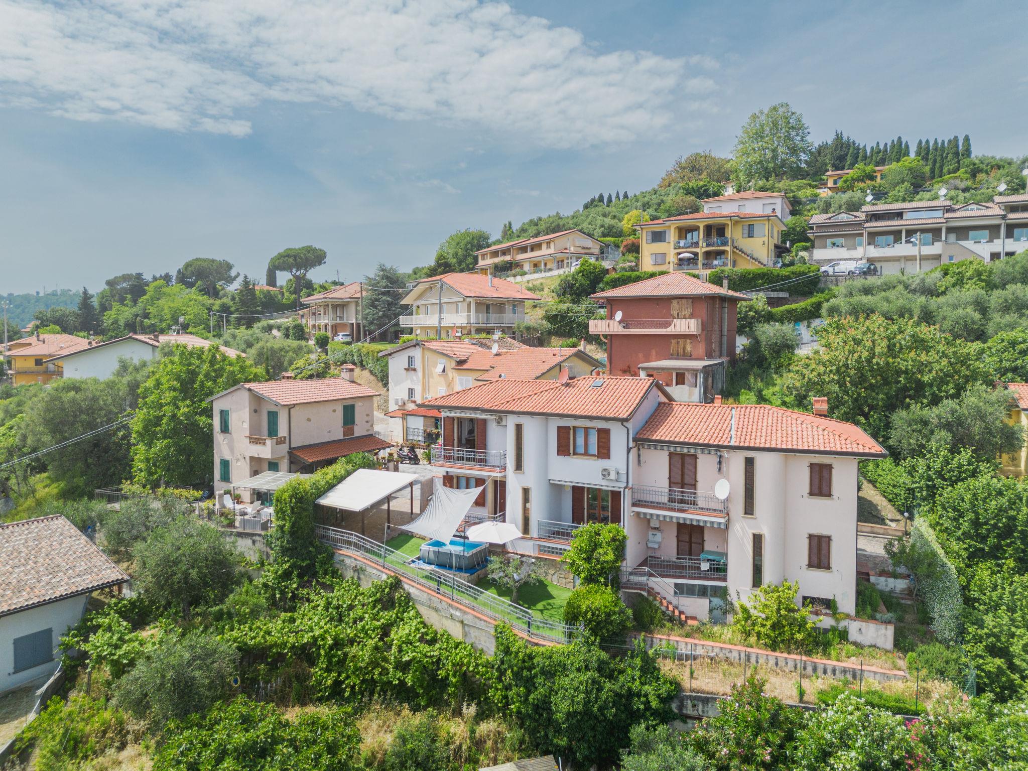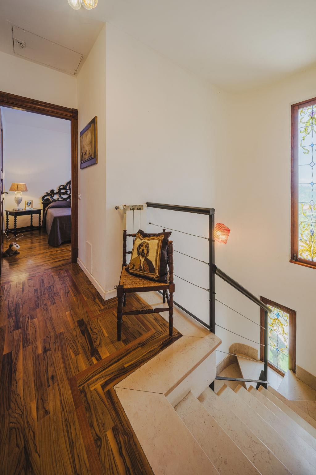 "Casa Lorena", 4-Zimmer-Doppelhaushälfte 140 m2, im Erdgeschoss. Geräumig und hell, vollständig renoviert, sehr komfortabel und modern eingerichtet: Wohnzimmer mit TV (Flachbildschirm). Ausgang zum Garten, zum Schwimmbad. Offene Küche (5 Kochplatten, Backofen, Gasherd, Toaster, Wasserkocher, elektrische Kaffeemaschine) mit Esstisch. Ausgang zur Terrasse. Dusche/Bidet/WC. G-Heizung, Klimaanlage. Heizung nur verfügbar von 01.11. bis 15.04. Unteres Geschoss: grosses Wohn-/Esszimmer mit 1 Doppeldiwanbett und offenem Kamin (nur Deko), Esstisch, Küchenblock und TV (Flachbildschirm). Obergeschoss: 2 Doppelzimmer, jedes Zimmer mit Klimaanlage. Ausgang zum Balkon. Dusche/Bidet/WC. Kleine Terrasse, kleiner Garten. Terrassenmöbel, Gartengrill (mobil), Liegestühle, Sitzplatz. Sehr schöne Panoramasicht auf das Meer und das Tal. Zur Verfügung: Waschmaschine, Wäschetrockner, Bügeleisen, Haartrockner. Internet (Wireless LAN, gratis). Parkplatz (überdacht, eingezäunt, 1 Auto). Bitte beachten: geeignet für Familien. Nichtraucher-Haus. Rauchmelder, Feuerlöscher. IT046018C2IVD8GYP9